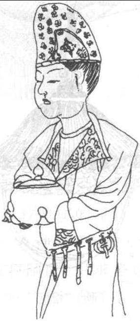 浑脱帽(敦煌莫高窟159窟壁画) 浑脱帽 浑脱帽唐代一种男用锥形帽。源自西北少数民族。浑脱,原为一种革囊。因此帽与浑脱相似,故名。起初,用皮革或毛毡制成,为男子常服。唐代初年,太尉长孙无忌(封赵国公)将席帽内衬羊皮,创制羊毛浑脱帽,为当时人所效仿。因无忌为胡人,故这种帽又称“赵公浑脱”。后演变为女帽,以锦绣为之,成为唐代妇女着胡服的一个组成部分。