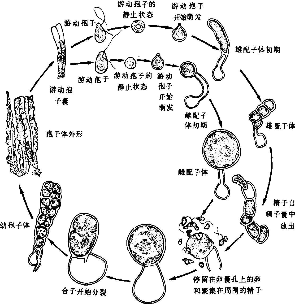 海带生活史 生长发育特性 海带传入中国后经多年栽培驯化,对温度适应性产生了变化,孢子囊形成适温15~20℃,配子体生长适温15℃,水温20℃时配子体不能排卵、受精。孢子体形成适温为10℃,生长适温为3~10℃,水温13~20℃时,光合作用强度不减,干物质积累最快。水温超过23℃,放出的游动孢子不能长成配子体。 栽培技术 海带栽培分育苗、分苗和养成三个阶段。 育苗 中国栽培海带初期多在海面育“秋苗”,后改为室内育“夏苗”。培育夏苗时要求海水中含孢子密度为100倍显微镜下每视野有30~50个孢子。将育苗器置含孢子海水中约6~8小时,使孢子附着其上。育苗器有绳帘(北方用)和竹帘(南方用)两种,须在水中煮沸并长时间浸泡。育苗期间严格控制水温和光照,保持水质清洁。配子体阶段水温为12~14℃,光照强度1 000勒克斯(lx)以下; 孢子体阶段水温为8~12℃,光照强度1 500~4 000勒克斯。育苗用海水经净化处理,并加入氮、磷、铁等无机盐类,保持池水流动,每天换水量为1/5~1/2。育苗池每半月彻底洗刷一次。采苗后约一星期开始洗育苗器,初期轻洗,后期重洗、勤洗,以防杂藻大量附着繁殖。 在炎夏,幼苗须低温条件下生长3~4个月后,移到海面(水温20℃以下)暂养。暂养方法和水层因海区而异,海水透明度不到1米者,多采用竹框硬架或梯形软架将育苗器平挂于筏架上;海水透明度超过1米者,一般将苗绳剪成长50~60厘米的截段,单绳垂挂于筏下。垂挂初期置水面下80~150厘米,后期逐渐提升到30~50厘米。 分苗 幼苗移到海面暂养,生长速度加快。当幼苗体长15~20厘米时,需及时移植疏散(分苗)。南方采用“单棵夹苗”法,苗距2~4厘米; 北方采用此法时,苗距为4~5厘米。如采用2~3棵一束时,束距为7~8厘米。夹苗时,忌夹幼苗柄部色环区,防带片畸形。南方混水区采用浅水层平挂,亩放养3~5万株幼苗; 北方一般采用斜平养和垂养,亩放养1.2~1.5万株。培养水层深于幼苗暂养水层,一般为100~200厘米。 养成 南方水质肥沃,透明度小,一般以满足海带对光条件要求为主; 北方海区水质偏瘦,透明度变化大,在海带不同生长期,要调节好光线、营养和水流三个因子间的相互影响。采取初期“密集暂养、集中施肥”,中期“移筏或移苗绳”的技术措施,可提高产量。 采收与加工 海带收获期是依据藻体的干重增长,即所谓“厚成”情况而决定的。水温和光照强度是影响“厚成”的主要因子,水温15℃左右可开始采收。有单棵间收、隔绳间收和初期单棵间收,后期整绳采收等方法。采收后立即将海带平铺晒场晒干,亦可将海带盐腌后晒干,但后法损失营养成分多且品质较差。干海带易吸水返潮和长霉变质。大规模生产时应及时分级、打包; 少量生产时可将干品密封,可较长期保存。 海带常见病有幼苗畸形病和腐烂病,大海带的绿烂病和叶卷病等。保持水质清洁、水流畅通,增施肥料,避免光照过强和水温剧烈变化,都可防止或减轻病害的发生和发展。 海带药名。出《嘉祐补注神农本草》。又名海马蔺、海草。为眼子菜科植物大叶藻Zosteramarina L.的全草。主产辽宁、山东。咸,寒。清热消痰,软坚散结,利尿。治甲状腺肿大,淋巴结结核,水肿,疝气。煎服: 4.5~9g。本品含碘、大叶藻素(Zosternin)、维生素B2及鞣质等。全草含对磺酸桂皮酸,木犀草素、香叶木素等的硫酸酯,香豆酸、多种氨基酸,还有糖脂和磷脂等。醚提取物在体外对结核杆菌有抑制作用。 海带kelpLaminaria japonica Aresch.,褐藻门,海带科,海带属。大型带片状海藻。冷温带性海藻,原产日本,在中国自然分布区为辽东和山东半岛海区,经过南移养殖已扩展到长江以南、浙江、福建、广东等省沿海地区。一般生长在低潮带下2~5 m深的岩石上。藻体(孢子体)褐色,基部具假根状固着器,上接柱形短柄,柄端着生带状叶片,一般长为2~4 m,宽20~30 cm。叶片革质,两缘呈波状褶皱。柄与叶片内部组织分化为“表皮”、“皮层”与“髓”。“皮层”中具黏液腔,“髓”部有类似筛管的构造。无性繁殖时于“叶片”表面产生许多棒状单室孢子囊,囊内产生的游动孢子逸出后,萌发成微型雌、雄配子体。有性生殖为卵式生殖。有明显异形世代交替现象。体内富含褐藻胶、粗蛋白、甘露醇、钾、碘以及维生素等,为营养价值较高的蔬菜。对防治甲状腺肿大、降血压、止血等亦有疗效。此外,还可提取褐藻胶、甘露醇等供食品、纺织、印染、橡胶、造纸等工业用。