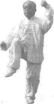 陈式太极拳式之一。为陈式二路太极拳中的动作。身体右旋180°,重心在左脚,右腿提起呈独立式; 右手为拳,以拳背向下后击发,左手为拳向上后击发,拳心向右。向后方发劲时应注意保持身体的中正平衡。如图。