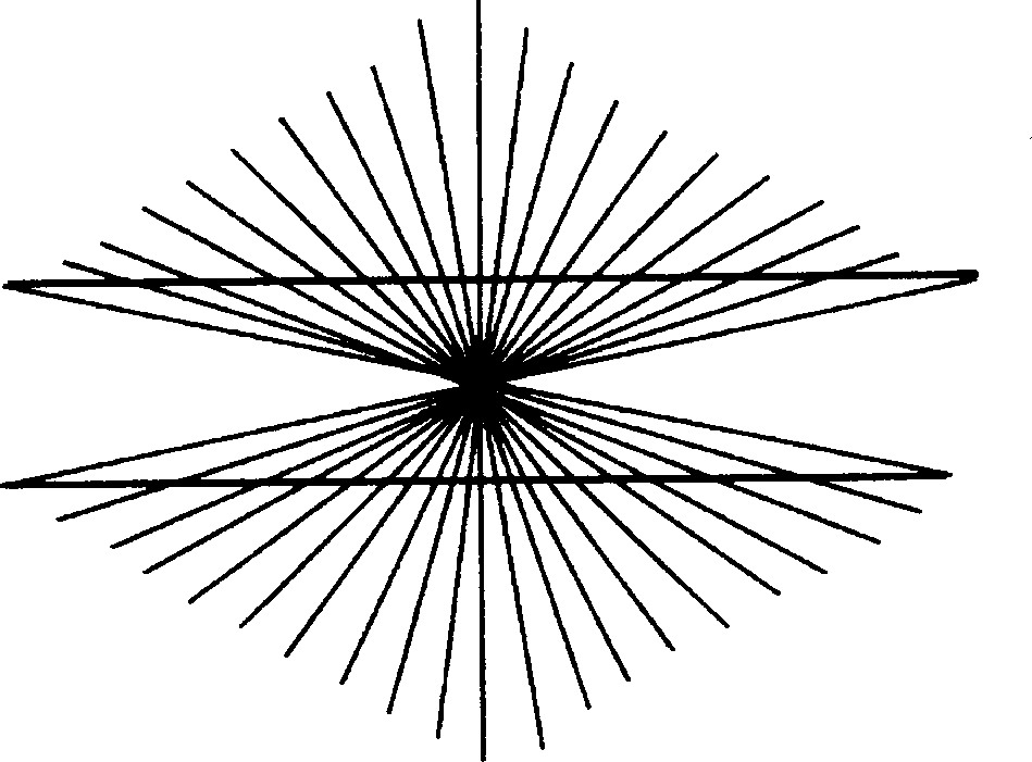 亦译“黑林错觉”,亦称“发散线条错觉”。方向错觉的一种。两条平行线,