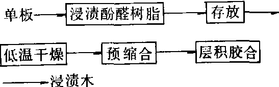 生产上,多用浸渍型低缩合的酚醛树脂,树脂含量在30~60%之间,浸渍时间取决于木材的厚度,如美国枫香单板,厚0.8毫米的单板,100克木材吸收35克干酚醛树脂需要1小时(在32℃时),而厚3.2毫米的单板,则需要16小时,即浸渍时间与木材厚度的平方成正比,浸渍也可在加压罐中进行。为了使木材中浸渍的树脂分布均匀,在干燥前要求存放1~2天,使酚醛树脂能充分扩散。存放后再进行低温干燥,干燥温度在60℃左右。为在排除木材中水分的同时,酚醛树脂能充分渗入木材细胞壁,干燥不能太快。低温干燥后,立即进行预缩合。预缩合工艺根据设备条件而定,如采用窑干设备,在95℃下需时1天;如采用连续干燥机,在150℃下半小时即可。最后将预缩聚过的木材单板胶合成要求厚度的浸渍木。 含有35%固体酚醛树脂的浸渍木,抗缩系数(ASE值)在70%左右,基本上可以消除表面裂纹的缺点。浸渍木的优点是:❶具有良好的抗腐性能与抗蚁蛀性能。 ❷有良好的电绝缘性。在30%相对湿度下,高于普通木材10倍,在90%相对湿度下,高于普通木材的500~1000倍。 ❸有良好的抗酸性,但抗碱性与普通木材相同。如,用糠醇处理木材,并在木材中固化形成糠醇树脂,则抗酸、抗碱性均良好。浸渍木虽不阻燃,但对抑制火焰蔓延有一定作用。浸渍木与普通木材相比,抗压强度、硬度和弹性模量均有提高,但韧性下降一半,顺纹抗拉强度亦明显减小。 浸渍木适合制作模具、鞋楦等要求有良好尺寸稳定性的产品。 浸渍木impreg又称浸脂木。对轻软木材用合成树脂处理而不加压制成的硬重木材。通常采用酚醛树脂浸注木材使树脂渗入细胞壁,与纤维素等分子的羟基结合,使形成胀缩性小、耐腐、耐湿、耐酸和强劲的硬质木材。处理方法有浸渍、加压浸注和涂刷等。浸渍木宜作地板、船舰甲板、车辆和门窗等,用以代替红木或乌木等名贵材使用。 |