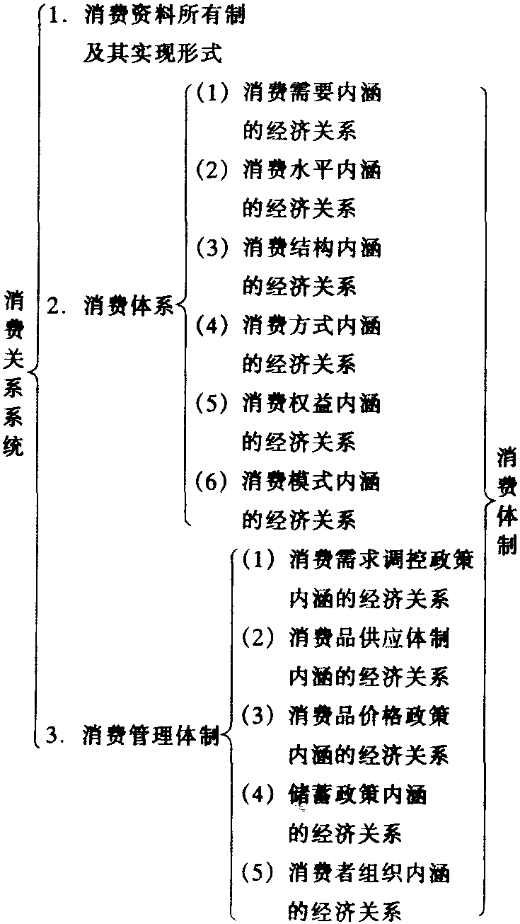消费关系Consumption Relationship“消费力”的对称。人们的社会生产关系在生活消费领域的表现,是消费经济学的研究对象之一。消费关系是消费过程的社会形式,与消费力相统一。消费过程既是人同消费对象发生关系的自然过程,又是人与人之间发生一定社会关系的社会过程,在该双重性质的消费过程中,必然发生三种消费关系: ❶自然消费关系,即消费中各种自然因素之间的关系,如食物营养成分与人的寿命、健康之间的关系; ❷社会消费关系,即消费中社会因素之间的关系,如个人消费与社会集体消费的关系; ❸自然社会消费关系,即消费中自然因素与社会因素之间的关系,如消费者与环境的关系。具体内容主要包括: ❶消费资料所有制性质及其在消费过程中的具体实现形式。消费资料所有制性质由生产资料所有制性质决定。社会再生产性质不同,其所创造出来的消费者所体现的社会经济关系性质也不同。 ❷消费体系内涵的经济关系。消费体系内涵主要包括消费者需要、消费水平、消费结构、消费方式、消费者权益、消费模式等。各个要素内涵的经济关系总和,构成消费体系内涵的经济关系体系。 ❸消费管理体制内涵的社会经济关系。消费管理体制,即国家通过消费需求调控政策、消费品供应体制、消费品价格政策、储蓄政策以及消费者组织等有关政策、法规和调节杠杆,对消费过程和消费者行为进行宏观调控的管理体制。消费者管理体制构成要素内涵的社会经济关系从不同侧面反映出消费者在消费过程中的地位及其相互关系。 消费关系 消费关系Consumption Relationship消费力的对称。消费经济学研究对象的重要组成部分之一。指人们在消费过程中与消费资料进行物质变换,并通过消费资料主体化所表现出来的人与人之间的社会经济关系。它是消费过程的社会形式,与消费力相统一,构成消费过程的特殊矛盾。 在我国,对消费经济学的研究起步较晚,对其中的各个基本范畴的内涵和表述是随着研究进程的深化逐渐完善起来的。对消费关系这一范畴的研究也是如此。消费关系是社会经济关系 (即生产关系) 总体的有机组成部分。把这个总体看成是一个由许多子系统构成的总系统,消费关系则是这个总系统的一个子系统。其具体内容包括: (1) 消费资料所有制的性质及其在消费过程中的具体实现形式。消费资料所有制的性质是由生产资料所有制的性质决定的。社会再生产的性质不同,其所创造出来的消费者所体现的社会经济关系的性质也就不同。消费资料所有制的占有客体即消费对象 (包括消费服务和精神产品) 是一定的社会经济关系的物质承担者,都是与一定社会经济关系结合着的物,纯粹的物,没有内涵着社会经济关系的物,只存在于未被人类劳动开发的原始自然界。恩格斯指出: “经济学所研究的不是物,而是人和人之间的关系”,“可是这些关系总是同物结合着,并且作为物出现” ( 《马克思恩格斯选集》第2卷,人民出版社1972年版,第123页)。消费资料所有制关系中,消费者与消费资料结合的具体形式反映出不同社会的消费关系的性质。在资本主义制度下,工人与消费资料的结合是通过劳动力商品同资本相交换而实现的。工人的消费不是自身的享受和发展,而是生产出可供资本扩大剥削的雇佣劳动者。工资的增长,工人生活水平的提高只是资本在新的条件下需要科学文化较高的雇佣劳动者而付出较多的费用。在充分发展的社会主义社会,劳动对资本的依附关系不复存在。劳动者是生产的主体,也是生产资料的主人,这就排除了人的异化。人们的生活消费是为了再生产全面发展的新人,逐步实现人的本质的全面复归,从而使社会经济关系的主体在更高的素质上再生产出来。马克思说: 不是在某个特殊方面再生产人,而要生产完整的人。 (2) 消费体系内涵的经济关系。由消费者需要、消费水平、消费结构、消费方式、消费者权益、消费模式等建构的体系,通常称为消费体系。消费体系各个构成要素内涵的经济关系的总和,构成消费体系内涵的经济关系体系。在不同的社会制度下,消费体系内涵的经济关系具有根本不同的社会属性; 在同一社会制度下,对不同的消费阶层来说也存在着重大的差别。以消费水平为例,改革开放以来,我国城乡居民的消费水平有了很大的提高,但是不同的消费群体、不同的消费阶层之间的消费水平仍存在着明显的差别。1978年~1985年城乡居民消费水平对比 (农村=1) 由2.9缩小到2.3; 1985年~1990年再缩小到2.23;90年代以后,曾经缩小了的城乡消费水平差距再次拉大。1993年和1994年城乡居民消费水平对比高达2.7左右。这些数据清楚地揭示出我国城乡居民消费水平的现状和近20年来城乡居民消费水平差距变化的情况。这种状况提醒人们要严重关注城乡居民之间的消费关系及其发展趋势,要采取积极的措施调整这种关系,使之趋于合理。 (3)消费管理体制内涵的社会经济关系。消费管理体制是指国家通过消费需求调控政策、消费品供应体制、消费品价格政策、储蓄政策、消费者组织等有关政策、法规、机构和调节杠杆,对消费过程和消费者行为进行宏观调控的管理体制。消费管理体制构成诸要素内涵的社会经济关系都从不同的侧面反映出消费者在消费过程中的地位及其相互关系。以消费需求调控政策为例,首先,要正确处理消费与积累