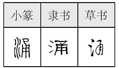 【提示】在异体字整理前,在读yōng、表示 “冒出” “向上升腾” 或 “水、气向上冒” 等意义时,“湧” 是“涌” 的异体; 用于姓氏时,作 “湧” 不作 “涌”;在读chōng、表示河汊义,用于地名时,作 “涌” 不作 “湧”。用,位于字或部件的下面时,起笔的竖撇改成竖。用中间的两横,宋体与左右两边相接,楷体与左右两边相离。 *涌chōng10画 水部 〈方〉 河汊。多用于地名: 河~|虾~(在广东)|白泥~(在广东)。 另见yǒng(482页)。