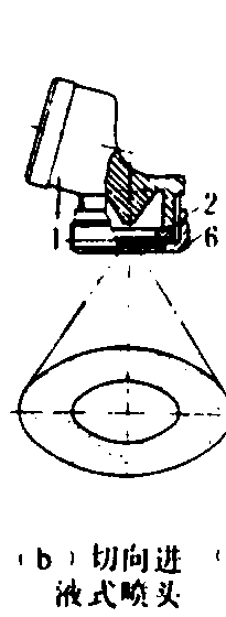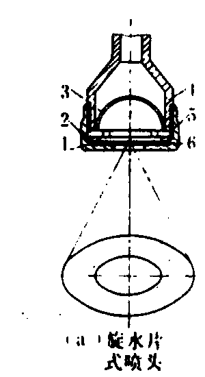 表中2~4号喷头用于喷洒杀虫剂和杀菌剂;2~5号用于除草剂叶面喷洒;2号还可用于喷洒生长调节剂;4~8号用于除草剂土壤处理;7~10号用于喷施液肥。 圆柱雾喷头 利用限流片(或限流体)限止液体流速,由较大的喷孔(一个或数个)流出形成圆柱雾流的液力喷头。其结构如图3。 风送式液力喷头 将喷头安装在风机喷口的中央或周围,使雾流中的雾滴在气流作用下得以二次雾化,并输送到目标物上。具有雾滴较非风送式喷头细、覆盖均匀、穿透性较好等特点,用于枝叶茂密的果树,效果较好。 按照风机喷口的形状和所安装液力喷头的数量及位置,可分为单头和多头圆锥雾喷口、扇形雾喷口等类型。形成气流的风机是雾滴二次雾化的能量来源,一般用轴流式和离心式等风机。