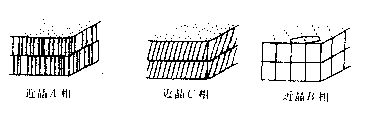 液晶 液晶yejing介于各向同性液体与晶体之间的一种新的物质状态。1888年奥地利植物学家F.赖尼策尔对胆甾醇苯酸酯加热时发现,在145℃时,该固体熔解为白色混浊液体,呈浓雾状。当这种液体的温度上升到179℃时,又变成清彻透明的液体。翌年,德国晶体学家O.勒曼又发现,该液体在混浊相时的特点是既有液体的机械性能,例如可流动和低粘性,又有晶体的各向异性光学性质,因此,他把该物质定名为液晶。液晶相常被称为中间相,凡具有这种中间相的物质都被称为液晶。液晶并非稀有物质,目前已知道的就有数千种,它们都是长形分子或盘形分子的有机化合物,长形分子典型的长度范围为15×10-10~40×10-10米,宽为10-10米的数倍。高分子聚合物加热熔化而成的液晶称为热致液晶;某些高分子聚合物溶解于适当溶剂(如水、硫酸、甲苯等)里,随着浓度的改变而出现不同的液晶态,称为溶致液晶。溶致液晶与温度也有一定程度的关系。热致液晶的长形分子依其排列状态的不同又可分为三类: ❶向列相,又称丝状相。其分子大致平行排列(图1示),但空间分布是混乱的,分子质心可以在三个方向平移,即彼此间上下左右前后的位置可以变动。这类液晶的例子是对氧化偶氮甲氧苯,它存在的温度范围为116~136℃。 ❷胆甾相,又称螺旋状相。其分子分层排列,每层分子的排列方向相同,但相继各层中分子的取向相差一个小角度,形成各层分子排列方向呈螺旋式改变,螺距h的典型值约3×10-7米(图2)。因为这种物质有螺旋形结构,所以它显示出旋光性,即当光线沿螺旋方向传播时,光的偏振面要旋转,在某些情况下,它对透射光的旋光本领可大至60000度/毫米。而通常的有机化合物的旋光性只有300度/毫米。这类液晶通常是胆甾醇酯,例如胆甾醇肉桂酸盐,它存在的温度范围为156~197℃。 ❸近晶相,又称层状相。其分子分层排列,层内分子互相平行,其方向与层面垂直,或有些倾斜(图3)。各层的分子只能在本层内运动,分子质心可以无序、能自由平移,或有序呈二维点阵。层与层之间有微弱的相互作用,能容易地滑动,或者可相对转动,按照分子空间分布的类型和排列方向相对于层平面的倾斜量又可把近晶相细分为一些子相。例如在近晶A相中,分子与层面垂直,在C相中分子相对层面倾斜,在B相中,层内分子质心排列成面心六角形,在D相中,层内分子又分组构成体心立方体结构。近晶相液晶的例子是乙基对氧化偶氮苯酯,它存在的温度范围为114~120℃。在所有的中间相中,近晶相与晶体的结构最接近,它们的差别是近晶相具有层状结构。1977年,印度S.钱德拉塞卡等合成了盘形分子的液晶。盘形分子液晶具有向列相,胆甾相和柱状相三种结构。向列相和胆甾相与上述长形分子的情况相似,只用把长棒轴换为盘形分子的法向轴即可。柱状相中的分子堆积成柱,在同一柱中分子间隔可以是规则有序的,也可以是不规则无序的。各分子柱可以排列成六角形或长方形的二维点阵(图4)。长形和盘形分子构成的液晶的各向异性与分子本身的不对称形状有关。 液晶在被发现后的一个相当长时期内没有得到实际的应用,直到10多年前发现液晶分子的排列可以受到电的控制而改变其光学性质,因而可当作显示材料,这才引起人们的兴趣。现在液晶已被广泛应用。液晶的各种性质已用来研制多种物理器件,尤其是电光器件,目前应用最广泛的是向列相和胆甾相液晶的电光效应。例如可用来作电子手表、微型计算器等的数字显示器件。液晶电光器件的功率消耗低,每平方厘米显示面积只需要消耗1毫瓦的电能,而且在常规照明条件下就可显示出清晰的像。又如用铁电性近晶相液晶可制成双稳态的微秒电光开关。现在小型液晶显示的平板电视也已制成。胆甾相的螺距对温度、压力、杂质等都很敏感,而改变螺距就能改变液晶的颜色,因此可用胆甾相来诊断皮下肿瘤,探知金属材料和零件的缺陷,以至在压力量度,红外、紫外、x射线显示,气体动理学和分析化学等方面都可加以利用。液晶与生物的关系也非常密切,在人体的脑、肌肉、肾上腺皮质、卵巢、神经髓梢、眼睛光感受器的膜层等处都发现有溶致液晶结构,因此生命现象与生物液晶直接相关,一些重要的生命现象(例如:衰老、癌变等)就可能与生物细胞膜的液晶态相变有关。溶致液晶在石油化工和医学方面也都有重要应用。
