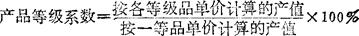 (2)产品质量分。 根据产品的物理性能,规定一定数量的抽查项目,每个项目规定一定的质量分,按全国统一的办法进行抽样检查,并按标准计分,满分为100分,达不到满分,则把各个单项实际得分相加,就是整个产品质量分。(3)产品等级率。 当某些工业产品可以按照技术质量标准的要求,划分为不同的等级时,所采用的指标。其计算公式为: