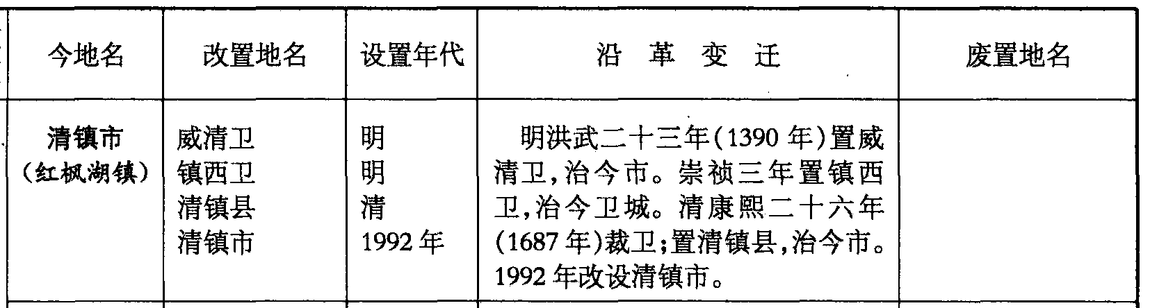 清镇市(红枫湖镇)威清卫镇西卫清镇县清镇市明明清1992年明洪武二十三年(1390年)置威清卫,治今市。崇祯三年置镇西卫,治今卫城。清康熙二十六年(1687年)裁卫;置清镇县,治今市。1992年改设清镇市。