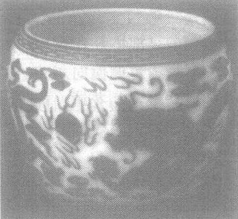 | 释义 | 清黄地套红玻璃钵 清黄地套红玻璃钵乾隆年间养心殿造办处玻璃厂制品,乾隆皇帝御用器物。乾隆时期玻璃制品不仅品种繁多,器形华丽,而且花纹繁缛,如龙、凤、夔、螭、鱼、鸟、人物、山水、花草等纹饰应有尽有。龙在中国封建时代是至高无上的皇权象征,帝王多自称“真龙天子”,因此宫中御用器物大都以龙作纹饰题材。此钵瓶体为浅黄玻璃高墙,外贴红色玻璃,口部为减地勾莲纹,钵腹即为减地二龙戏珠,间衬以火纹、云纹,以显龙之神威。其下碾减地双层仰莲纹,以黄玻璃衬托红色。底碾“乾隆年制” 阴文楷体款。这件彩套彩玻璃钵,在色彩上显得富丽堂皇,且又配合得柔和谐调,纹饰主题突出,显出尊贵威严的气派,制作精湛,为套色玻璃器中的杰作。