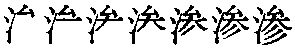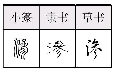 shèn滲,形声,从水,參声,液体慢慢地透入或漏出。《简化字表》类推简作“渗”。 |
