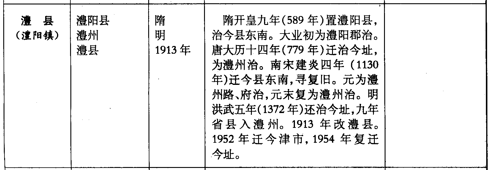 澧县(澧阳镇)澧阳县澧州澧县隋明1913年隋开皇九年(589年)置澧阳县,治今县东南。大业初为澧阳郡治。唐大历十四年(779年)迁治今址,为澧州治。南宋建炎四年(1130年)迁今县东南,寻复旧。元为澧州路、府治,元末复为澧州治。明洪武五年(1372年)还治今址,九年省县入澧州。1913年改澧县。1952年迁今津市,1954年复迁今址。