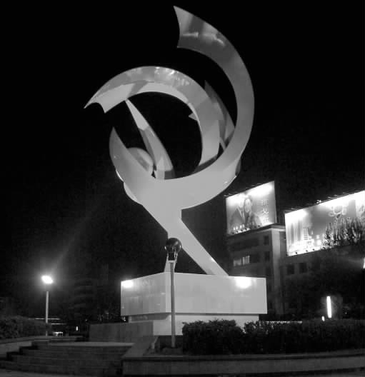 位于咸阳市中心人民广场东侧。投资34万元,由西安中铁装饰艺术公司设计承建,2001年7月动工。材料为碳钢板表面喷塑,高10米。造型为一只昂首朝阳、展翅腾飞的火凤凰,口中轻衔“太阳”,光芒四射,谓之衔阳,取谐音咸阳,借以营造祥和、美好的气氛,寓示着咸阳古都历经几千年风霜,焕发青春,奋发向上,蓬勃发展的精神内涵。