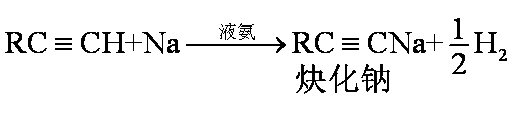 在低温液氨中炔氢可以被金属钠或钾置换,生成相应的金属炔化物: