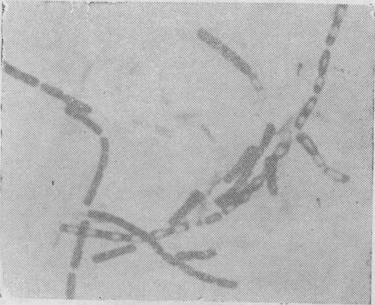 炭疽杆菌 ×1100 本菌繁殖体的抵抗力与一般细菌同,但芽胞抵抗力特强,在室温干燥环境中能生活20余年。在皮革中也能生存数年。牧场一旦被污染,传染性可维持20~30年。煮沸40分钟,140℃干热3小时,121℃高压蒸汽10分钟才能杀死芽胞。对化学消毒剂抵抗力也很强,新配制的20%石灰乳、20%漂白粉需浸泡48小时,5%石炭酸需5天。对碘敏感,1:2500的碘液10分钟可杀死芽胞。对青霉素敏感,在每毫升含0.05~0.5单位青霉素培养基上,可发生形态变异,成为大而均匀的球状链,称为串珠,有鉴别意义。有毒的炭疽杆菌如长期在42~43℃中培养,或培养基中加入少量的石炭酸、重铬酸钾、氯化钾以及甘油,可促使细菌变异,失去产生荚膜和芽胞的能力,变成无毒的光滑型菌落,可利用这种无毒的炭疽菌制备疫苗。 炭疽杆菌有三种抗原成分: ❶保护性抗原: 是炭疽杆菌生活过程中产生的蛋白质,为炭疽毒素的一个组成部分,有抗吞噬作用并具免疫原性,注射豚鼠可对本菌产生抗感染免疫,故患炭疽病后有免疫力。 ❷荚膜抗原:是由D-谷氨酸多肽组成的半抗原,能抗吞噬,与其毒力有关,失去荚膜后毒力也消失。 ❸菌体抗原:由D-葡糖胺、D-半乳糖和醋酸组成的多糖半抗原,本身无毒性,但有种的特异性,且耐热。感染动物死后,尸体组织浸出液煮沸半小时过滤后,耐热的菌体抗原不被破坏,能与特异性抗体发生环状沉淀,称为Ascoli试验,有诊断炭疽病的价值。 炭疽杆菌的荚膜能抗吞噬,利于其在体内繁殖和扩散。有毒菌株还能产生毒性强的毒素,体外培养时必须加入碳酸氢钠方可产生毒素。毒素有三种成分构成: ❶水肿因子(edema factor,EF); ❷保护性抗原(protective an-tigen,PA); ❸致死因子(lethal factor,LF)。这三种物质分别注射动物均无毒性,但PA加以EF或LF,则发生水肿和死亡。三种毒素抗原性不同,三者的相互关系仍不清楚。 炭疽主要是食草动物的传染病,因食入芽胞而发生肠炭疽,或皮肤接触而引起皮肤炭疽。牛羊最易感,马、猪次之,犬为食肉动物,有一定抵抗力。细菌进入易感机体后,因能抗吞噬而扩散入血,引起败血症。如进入免疫机体可被吞噬而消失。人对炭疽杆菌也很易感,因侵入途径不同而产生三种不同类型的炭疽病。 ❶皮肤炭疽:最常见。细菌直接经皮肤小伤口进入,初在局部形成小疖,中心有水泡,以后化脓,最后中心形成黑色坏死。病人高热寒战,如不及时救治,可发展成败血症而死亡。 ❷肺炭疽: 由于吸入芽胞,病初似感冒,以后发展成严重的支气管肺炎及全身中毒症状,2~3天内即死亡。 ❸肠炭疽: 由于食入未煮透的病畜的肉制品所致,病人有连续性呕吐及便血,全身中毒症状严重,2~3天内可死于毒血症。上述三型均能引起急性出血性脑膜炎而死亡。微生物学检查法首先要选取疑有炭疽杆菌污染的检材,并在有专门防护的实验室内进行检查。先作涂片和革兰染色,如发现有荚膜的典型竹节状革兰阳性大杆菌,结合临床症状即可初步诊断。涂片时应加1:1000的升汞固定5分钟以破坏芽胞,然后染色。如经特异性荧光抗体染色为阳性即可诊断。检材的分离培养应分别接种血平板、普通琼脂平板和碳酸氢钠平板。血标本应先做增菌培养。如检材杂菌污染严重则加热65℃30分钟以杀死无芽胞杂菌,再在肉汤中培养4小时增菌后,然后分离培养。如发现可疑菌落,则根据其生物学特征及动物试验进行鉴定。必要时可将检材或培养物0.1ml皮下接种小鼠或豚鼠,死亡后,内脏及血液中有大量有荚膜的炭疽杆菌。如检材为干的皮毛,陈旧或严重污染的动物尸体,可作Ascoli试验。此外,还应与类炭疽杆菌进行鉴别。类炭疽杆菌种类甚多,除上述11种外还有许多种类,其共同特点是有动力,有芽胞,无荚膜。多数能溶血。肉浸液中均匀混浊生长或形成菌膜。一般无致病力,是条件致病菌及实验室的污染菌。因其芽胞的抵抗力强,枯草杆菌、嗜热脂肪杆菌和凝结杆菌常用来检定高压灭菌器的效果。与炭疽杆菌的区别见表。根据我国学者1966年研究的结果,炭疽杆菌和类炭疽的鉴别以串珠试验、噬菌体裂解试验和碳酸氢钠培养基在5%CO2条件下培养三个方法最有意义,因此,鉴别应以此三法为主,其余方法仅能作为辅助的鉴别方法。 炭疽杆菌与类炭疽杆菌的鉴别