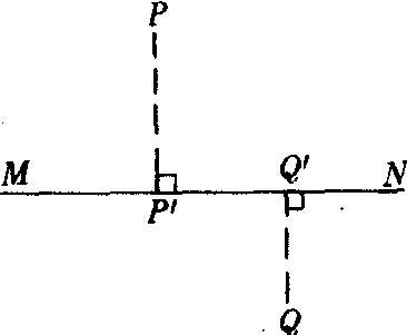 | 释义 | 点在直线上的正射影 点在直线上的正射影dianzai zhixian shang de zheng-sheying简称射影,是一点到一条直线所作垂线的垂足.如图,PP′⊥MN于P′,QQ′⊥MN于Q′,P′,Q′分别是P,Q在直线MN上的正射影.