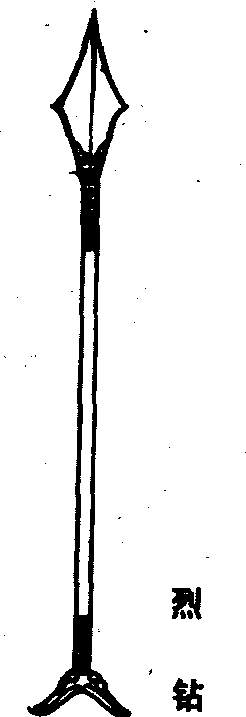 古兵器。宋曾公亮《武经总要》卷十三:“烈钻,刃袴长一尺五寸。上锐,下方阔八寸,柄长三尺,有拐”。