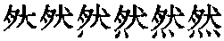 然❶是;对:~诺︱不以为~。 ❷如此;这样:未~︱或~︱已~︱亦~︱当~︱防患未~丨大谬(miu)不~。 ❸文言连词,相当于“但是”、“不过”:此事虽小,~亦不可忽视。 ❹表示状态的词尾:巍~︱嵬(wei)~︱岿(kui)~︱屹(yi)~︱突~︱忽~︱猛~︱陡~︱骤~︱霍~︱顿~︱赫~︱蓦(mo)~︱猝(cu)~︱遽(ju)~丨奄(yan)~︱显~︱昭~︱了(liao)~︱灼(zhuo)~︱憬(jing)~︱恍~︱卓(zhuo)~︱超~︱倜(ti)~︱傲~︱昂~︱怏(yang)~︱岸~︱肃~︱凛(lin)~︱悚(song)~︱蹴(cu)~︱欣~︱蔼(ai)~︱安~︱坦~︱恬(tian)~︱陶~︱悠~︱翛(xiao)~︱怡(yi)~丨慨~︱愤~︱勃~︱艴(fu)~︱悻(xing)~︱讶(ya)~︱骇(hai)~︱愕(e)~︱蘧(qu)~︱悍~︱贸~︱公~︱木~︱漠~︱茫~︱恝(jia)~︱全~︱断~︱毅~︱决~︱翻~︱截~︱迥(jiong)~︱俨(yan)~︱宛~︱翕(xi)~丨黯(an)~︱索~︱萧~︱怃~︱怅~︱颓(tui)~︱嗒(ta)~︱惘(wang)~︱愀(qiao)~︱恻(ce)~︱怆(chuang)~︱凄~︱悢(liang)~︱惨~︱潸(shan)~︱泫(xuan)~︱喟(kui)~︱阒(qu)~︱默~︱哑~︱悄~︱杳(yao)~︱轰~︱哗~︱訇(hong)~︱跫(qiong)~︱戛(jia)~︱飒(sa)~︱砉(xu)~︱铿(keng)~︱沛~︱蔚~︱盎(ang)~︱崭~︱焕~︱井~︱孑(jie)~丨荡~︱释~︱涣~︱倘(tang)~︱徒~︱枉~︱森~︱欿(kan)~︱翩(pian)~︱飘~︱皤(po)~︱酡(tuo)~︱赧(nan)~︱粲~︱嫣(yan)~︱栗~︱飘飘~︱安~无恙(yang) ︱蔼(ai)~可亲︱轩~大波︱蔚(wei)~成风︱靦(tian)~人面︱挺~屹(yi)立︱宛~在目︱惘(wang)~若失︱巍~屹(yi)立︱竦(song)~起敬︱豁(huo)~贯通︱浑~一体︱豁(huo)~开朗︱焕~一新︱毅~决~︱翻~悔悟︱斐(fei)~成章︱怫(fu)~作色︱恍~大悟︱哑~失笑︱嫣(yan)~一笑︱井~有序︱怡(yi)~自得︱悠~自得︱荡~无存︱涣~冰释︱淡~置之︱愤~作色︱黯(an)~失色︱黯(an)~销魂︱勃~大怒︱超~物外︱懵(meng)~无知︱溘(ke)~长逝︱岿(kui)~不动︱岿(kui)~独存︱喟(kui)~长叹︱昭~若揭︱漠~置之︱孑(jie)~一身︱庞~大物︱嗒(ta)~若失︱坦~自若︱悄~无声︱索~无味︱肃~起敬︱悍~不顾︱哄(hong)~大笑︱截~不同︱处(chu)之泰~︱毛骨悚(song)~︱兴致索~︱大义凛(lin)~︱一目了(liao)~︱浩气凛(lin)~︱道貌岸~︱举坐哗~。 ○自~((一)不是人为的;天然存在的。(二)不造作,非勉强的。(三)当然)。 然rán❶ 对,是:不以为然。 ❷ 这样,如此:不仅要知其然,而且要知其所以然。 ❸ 形容词或副词的后缀:猛然│突然│怡然自得。 ❹ 姓。 然(15次) ❶是;对的;正确的。不清澂其~否《章·日》 ❷肯定、相信之词。君思我兮~疑作《歌·山》 ❸如此;这样。与前世而皆~兮《章·涉》 ❹乃;于是。~容与而狐疑《章·思》 ~欿傺而沈臧《辩·三》 ~中路而迷惑兮《辩·六》~惆怅而自悲《辩·七》 ❺然而。~怊怅而无冀《辩·七》 ~霠曀而莫达 ~潢洋而不可带《辩·八》 ~隐悯而不达兮 ~欿切而永叹《哀》 ❻既然。~潢洋而不遇兮《辩·九》 ❼作词助。表状态或语气。众薆~而蔽之《离》 吾至今乃知其信~《章·诵》 然rán❶乃,于是。《九辩》:“收恢台之孟夏兮,然欿傺而沈藏。”意即秋冬的到来,一扫盛夏的繁茂,于是旺盛的生机不知躲藏到哪里去了。 ❷连词,表转折,但是、然而。《九辩》:“被荷裯之晏晏兮,然潢洋而不可带。”意即披上荷叶短衣虽然美丽而芳香,但是又宽又大难以系带。同篇又有:“忠昭昭而愿见兮,然霠曀而莫达。”意即我希望奉献我的忠心于君王,但是阴云蔽日难以到达君王面前。 ❸ 代词,这样、如此。《惜诵》:“九折臂而成医兮,吾至今而知其信然。”“然”指代“九折臂而成医”。《涉江》:“与前世而皆然兮,吾又何怨乎今之人!”“然”指代前文所说的行忠直而遇害。 ❹ 作词缀,表状态。《离骚》:“众薆然而蔽之。”薆然,遮蔽的样子。《卜居》:“宁超然高举以保真乎?”超然,高超出众的样子。 然燃rán火烧。比喻鲜红。南朝·梁·沈休文《早发定山》:“野棠开未落,山樱发欲然。”唐·杜甫《绝句》之二:“江碧鸟逾白,山青花欲燃。”清·王士禛《访禅智寺石刻》:“大有因缘公记取,山樱重向早春然。” 然ran然而 然后 然诺 然则 蔼然 安然 岸然 黯然 昂然盎然 傲然 必然 勃然 不然 惨然 粲(can)然1 恻然 诧然 怅然 超然 诚然 怆(chuang)然 纯然 猝然 淡然 当然 荡然 定然 陡然 断然 顿然 愕然 幡然 翻然2 斐(fei)然3 废然 奋然愤然 公然 固然 果然 骇然 酣然 悍然 浩然 赫然 轰然 哄然 忽然 哗然 涣然 焕然 惶然 恍然 浑然 或然 惑然 霍然豁然 既然 寂然 戛然4 孑然 截然 尽然 井然 竟然 迥(jiong)然 居然 遽(ju)然 决然 慨然 溘(ke)然 铿然 岿然 喟(kui)然5 栗然 了然 凛然 茫然 贸然 猛然 靡然 渺然 蓦然漠然 默然 木然 赧(nan)然 偶然 庞然 翩然 飘然 凄然 歉然 悄(qiao)然 全然 仍然 飒然 潸(shan)然 森然 使然 释然倏(shu)然6 率然 爽然 悚(song)然 肃然 虽然 索然 泰然 坦然 倘然 陶然 天然 恬然 突然 徒然 颓然 宛然 枉然 惘然巍然 未然 蔚然 怃然 翕(xi)然 显然 萧然 欣然 悻然 哑然嫣然 俨然 怏然 杳然 依然 怡然 已然 屹然 亦然 毅然 悠然 油然 跃然 崭然 昭然 骤然 卓然 孜然 自然 纵然 或然率 或然性 天然气 自然村 自然界 自然物 不尽然 大自然 惶惶然 飘飘然 所以然 想当然 要不然 再不然 终不然 必然王国怅然若失 荡然无存 幡然悔悟 浩然正气 焕然一新 豁然开朗 浑然一体 截然不同 井然有序 迥然不同 岿然不动 漠然置之 怦然心动 泰然处之 泰然自若 天然食品 突然袭击 不期而然 不以为然 处之泰然 次序井然 大谬不然 大义凛然 道貌岸然 果不其然回归自