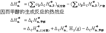 因甲醇难以直接合成,其生成热可通过物质的燃烧热计算。 由盖斯定律得: 任一反应的标准等压反应热等于反应物的燃烧热之和减去生成物的燃烧热之和,即