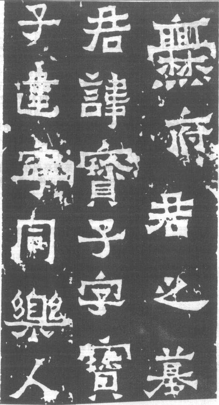 爨寶子碑 (局部) 東晉大亨四年 (桓玄私紀年,即義熙元年,公元405年) 刻。隸書十三行,行三十字。後列職官題名十三行。額題 “晉故振威將軍建寧太守爨府君之碑”。清·乾隆四十三年(1778)雲南省曲靖縣城南三十五公里揚旗田出土。現存曲靖縣第一中學碑亭内。初出土時不甚著聞,《新通志》 未予詳載。七十餘載後,即咸豐二年(1852)移置城中武侯祠。鄧爾恒於碑石左下部刻其由來,遂鳴於世。是文談及清阮元嘗將 <爨龍顏碑> 視為 “滇中第一古石”,而此碑早立五十余載,且先出土數十年,却鮮為人知,誠憾事矣。此碑書體在隸、楷之間,或謂由分入楷之漸,而多稱隸書。用筆、結體舆 <大代華岳廟碑> (439)、<中岳嵩高靈廟碑> (456)、<爨龍顏碑> (458)、<劉懷民墓志> (464) 為一係。筆劃雄强,運筆飛動,素樸天真,可入逸品。此為目前所見由隸書過渡到楷書之典型,古拙中見凝重,當在書道史上大書之。此碑建於王羲之殁後約三十年,斯時南方書法以羲之為中心,盛行絢爛華麗之風尚。是石同時建於南方,而書風舆法帖中所見羲之書大异焉,此一情况如以南方法帖與北方碑版間明顯之風格差异相比較,則為值得探索之問題。一說此碑距晉文化中心殊遠,屬邊陲地帶之書風。不當。觀其碑字,舒展大放,與五十年後出土之 <爨龍顏碑>俱呈中央地帶颯爽之貌。另一說亦過武断,如清楊守敬 《平碑記》 曰: “觀此書,乃知今世所傳鍾 (繇)、王 (羲之) 法帖,非真嗣種也。”鍾繇、王羲之法帖,屢經重刻,難免失真,所謂 “非真嗣種”,言之過矣。兩晉禁立碑之製,當時刻石極少。故殊為世重。此碑今已列入重點保護文物。 |