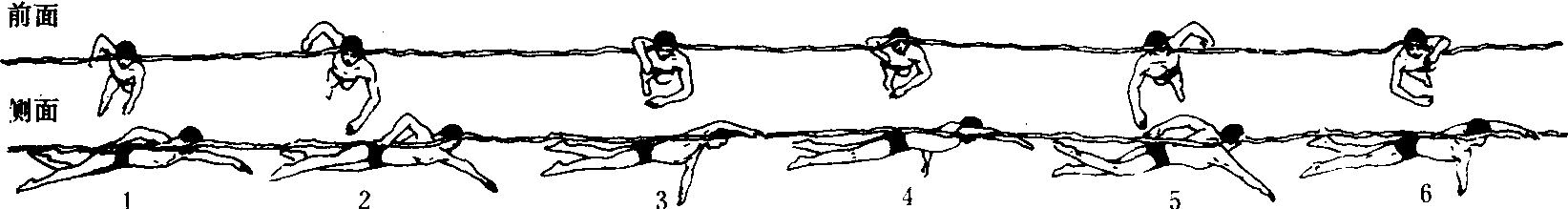 | 释义 | 爬泳 爬泳竞技游泳姿势中速度最快的项目。在自由泳项目比赛中都采用此泳式。所以,通常也称“自由泳”。爬泳时,身体俯卧在水中,靠两腿上下交替打水,两臂轮流划水推动身体前进。其状很象爬行,故名爬泳。动作要领: 爬泳技术分解动作图 不超过身体的最低部位。动作要协调连贯,有节奏。❸臂部入水时手指自然伸直并拢,肘高于手,向斜下方切插入水,入水点在身体纵轴和肩关节的纵轴线之间。抱水时,屈臂和上臂积极外旋、屈腕、屈肘。划水时手掌向后保持高肘姿势,上臂和前臂同时向后划水。出水时,由上臂带动肘向上方做提拉动作。移臂时,动作要放松自如,与另一臂划水动作协调一致。 ❹两臂配合。要保持连续推进力,速度均匀。呼吸与臂配合要自然、协调。教学重点: ❶掌握腿部打水动作。可手扶池边,身体成俯卧姿势,反复做两腿上下打水练习。也可采用蹬池边或池底,在滑行中做两腿上下打水练习。 ❷掌握划水动作。可站在齐腰深的水中,两脚开立,身体前倾入水,做两臂交替划水练习。也可在蹬池壁后,借助惯性做两臂交替划水练习。 ❸掌握腿、臂和呼吸配合。可俯卧在水中,做憋气游练习。也可反复做短距离游泳练习。