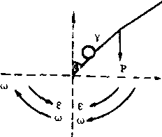 第二定律告诉我们,力与加速度是正比关系。因此,凡属讨论力与加速度关系时,就需用该定律进行分析研究。实际上,人体运动状态一旦发生变化,该定律就发生作用。所以,第二定律在体操动作中得到了广泛运用。在转动中,该定律表现为人体角加速度与外加力矩成正比,其方向与转矩方向相同。其数学表达式为M=Jε,即作用于人体的合外力矩,等于人体对转轴的转动惯量和角加速度之积,此谓转动定律,是牛顿第二定律在转动中的对应形式。现以单杠大回环为例,运用转动定律分析一下角加速度ε的变化规律(见图)。由转动定律知道M=Jε,因为M=Prsinα,所以Jε= Prsinα。而重力P是常量,又重心半径r和转动半径成正弦函数关系,则r不变J亦不变,可见ε的大小和方向由sinα决定,即取决于回环阶段,即