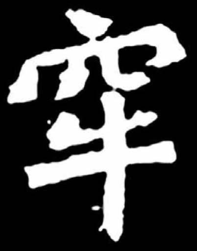 láo表意,甲骨文、金文从牛在栏圈中,小篆字形稍变,隶定为“牢”。本义表示养牲畜的栏圈,引申为关押犯人的监狱、坚固、经久等。牢 (láo)閑,養牛馬圈也。从牛,从冬省,取其四周帀也。 牢 甲 金 篆 隶láo【析形】象形字。古文字形像圈栏围牛而养之形,牛用以烘托。隶书字形牛圈的象形变作“宀”。 【释义】《说文》:“闲养马牛圈也。”(闲:栅栏)本义是关养牲畜的栏圈。[亡羊补牢]谓走失了羊,赶快修补羊圈,还不算晚。比喻失误后及时补救。又引申为作祭品的牲畜。古代祭礼用的牛、羊、豕三牲,三牲各一为一牢。也单指供祭祀用的牛或羊、豕。又牛、羊、豕俱用叫[太牢],只用羊、豕二牲叫[少牢]。由圈养义,引申为监禁犯人的地方,如[牢房]也引申为囚禁、笼络、坚固、稳当等义,如[牢不可破]。 【shape analysis】It is the pictograph character.In ancient character,it is shaped like a scene that the fence enclosed the cattle. 【original meaning】The fence for enclosing and raising animals.Ancient cattle and sheep for sacrifice were kept in fence,so the character was extended to mean the animals for sacrifice.The cattle,sheep and pigs for sacrifice were kept in each barn. 牢 ☚ 俘 𦣻 ☛ 00000575 |