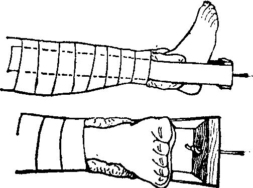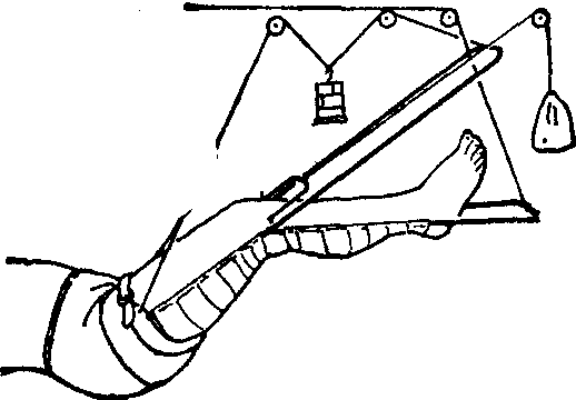 | 释义 | 牵引术traction利用牵引器械,牵拉胎儿的前置部,以解救难产的基本助产方法。适用于母畜轻度产道狭窄或胎儿稍大,阵缩及努责微弱,胎位轻度异常和某些姿势异常而同时胎儿又较小时。此外,胎儿异常姿势经矫正后,常用牵引术取出胎儿。 牵引术traction系骨科常用的一种治疗技术。方法有骨牵引、皮牵引及徒手牵引等。适应症:长骨骨折与骨折脱位后不稳定,需维持对位排列者;骨折脱位需持续牵引方能复位者;需矫正或预防因肌肉痉挛所致的关节畸形;软组织挛缩引起的畸形;某些腰、颈椎疾病等。牵引时必须注意引力的大小、方向,否则可致失败。 牵引术 牵引术牵引术是用牵引力和反牵引力对肢体或躯干进行牵引,使骨折移位,关节脱位得到复位和固定,或使关节挛缩畸形得到矫正。通过牵引装置,利用悬垂重量为牵引力,身体重量为反作用力者为持续牵引,其牵引重量以骨折缩短移位的大小和病人的体重而定。 图1 皮肤牵引 (1)布莱恩特牵引(Bryant's traction):病人仰卧,用皮肤牵引向上悬吊双下肢,以自身重量作牵引,臀部离开床面为度,牵引中应随时注意下肢的血循环。适用于二岁以内的小儿股骨骨折。可结合小夹板局部外固定。 (2)登禄普牵引(Dunlop's traction):这是一种上肢皮肤牵引,病人仰卧,上臂外展90°,屈肘45°,前臂在此角度上纵向牵引,上臂则用支架固定,或在上臂用宽带悬挂重量控制上臂抬起。适用于幼儿肱骨髁上骨折不宜于手法整复者。 (3)鲁塞尔牵引(Russell's traction):它是由悬垂重量通过三个定滑轮和一个动滑轮形成的合力组成的,故名之为合力滑动牵引,比单纯滑动牵引力大一倍。此牵引不需用布朗Br-aun架,只需用软枕垫托,病人感觉舒适(图2)。 ![]() 图2 Russell牵引 骨牵引 这是用钢针穿过骨胳进行的牵引,它能承受较大的牵引重量,一般股骨骨折用1/7体重,胫腓骨骨折1/10体重作牵引力,从而较迅速纠正骨折移位,关节脱位或关节挛缩畸形,尤适用于合并剧烈肿胀或皮肤有水疱的骨折,既能迅速消肿,又便于护理。在小夹板配合固定,保持骨折不移位的条件下,可以加强肢体功能锻炼,充分发挥运动与固定在骨折治疗中的作用,防止关节僵硬和肌肉萎缩,促进骨折愈合。牵引用具常用骨圆针、铁锤、手摇钻、各号牵引弓。 (1)股骨髁上牵引: 将患肢置于布朗架上,膝关节屈曲40°,自髌骨上缘引一横线,再由腓骨小头前缘向上述横线引一垂直线,二线之交点为穿针点,也可在内收肌结节之前方及上方各1.2cm。由内向外穿针,此牵引适用于短缩移位大的股骨干骨折,股骨转子间骨折和髋关节挛缩畸形。 (2)胫骨结节牵引: 在胫骨结节下2.5cm及胫前嵴后1.2cm处,从外向内穿针,此牵引适用于股骨干,股骨转子间及股骨颈骨折,但需用大重量牵引时,不宜用此法,以免牵松膝关节,宜用股骨髁上牵引。 (3)跟骨牵引: 穿针时在小腿后方垫一沙袋,使足跟抬高。从内踝下端至足跟后下缘联线的中点为穿针点,从内向外穿针。此牵引适用于不稳定型胫腓骨骨折和膝关节屈曲挛缩畸形。 (4)尺骨鹰嘴牵引: 从尺骨鹰嘴尖端向远侧一横指处再向内侧1.5cm处为穿针部位。为了避免损伤尺神经,主张在鹰嘴背侧上一螺丝钉到对侧骨皮质作牵引,此牵引适用于严重肿胀或有水疱的肱骨髁上骨折及肱骨髁间骨折。 (5) 颅骨牵引: 用颅骨牵引器,如Crutchfield牵引钳安装在颅骨上进行的一种骨牵引,适用于颈椎骨折和脱位。 牵引方式 根据牵引力的安置和使用的支架有下列几种牵引: (1)滑动牵引: 通过滑轮的悬垂重量为牵引力,抬高床尾使身体重量作为反牵引力,对骨折端产生持续的牵引作用。牵引力的方向应和近侧骨折段所指的方向一致,否则将造成成角畸形。滑动牵引分单纯滑动牵引和合力滑动牵引(鲁塞尔牵引)。 (2) 固定牵引: 将托马斯架上端铁圈抵着坐骨结节,将骨或皮肤牵引固定于支架的下端,上下端的力量和方向呈拮抗作用。支架下端固定在抬高的床尾上。这种牵引适用于股骨骨折复位后保持对位对线,而不能获得牵引复位的作用。 (3)托马斯牵引(Thomas’s traction):在骨科中是治疗损伤或疾病常用的方法,最多用在治疗股骨干骨折,采用一无屈膝装置的托马斯架(参见图3)和两条长胶布,后者下端各连一条带子,胶布作好皮肤牵引后,下端的两条带子彼此相反地绕过支架的直杆,牵紧并结扎在横的弧形杆上,此法是以坐骨结节为反牵引力的支点,常需随时将带子收紧结扎。后来改用牵引板、滑车和重量,作持续牵引,省去随时收紧带子的不便。 ![]() 图3 平衡牵引 (4)平衡牵引: 多用于股骨干骨折,采用胫骨上端骨牵引,或用固定牵引(见前),再将托马斯架通过滑车及重量悬吊于巴尔干架上,使整个托马斯架能随病人及伤肢自由起落,便于护理而不影响骨折的位置(图3)。 (5)布朗牵引(Braun’s traction):伤肢穿针后置于布朗牵引架上进行牵引(图4)。适用于股骨干; 股骨转子间; 股骨颈和胫腓骨骨折。 (6)垫枕牵引:伤肢穿针或贴胶布后不用托马斯或布朗支架,而垫枕进行牵引。此法简便、适舒。适用于股骨和胫腓骨骨折。 ![]() 图4 Braun牵引 (7)枕颌牵引: 用Glisson吊带前方托住下颌,后方托住枕骨结节部进行牵引(图5)。可采取坐位或卧位牵引。适用于颈椎骨折脱位,颈椎病或痉挛性斜颈。 (8)骨盆悬带牵引: 病人仰卧,用骨盆悬带将骨盆向上牵引,使之稍离床面。适用于有移位的骨盆环骨折。 ![]() 图5 枕颌牵引 ![]() 图6 