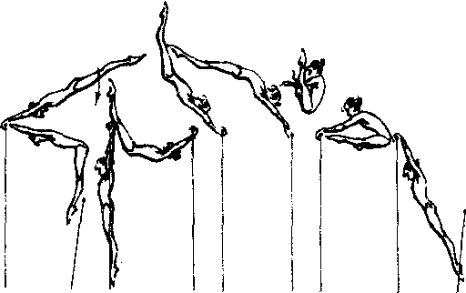 | 释义 | 特卡切夫腾越 特卡切夫腾越Tkatschev单杠高难度飞行动作之一。简称“前振后切”,即向后大回环前摆上分腿向后腾越成悬垂。由前苏联运动员特卡切夫首创,并成功地用于世界性比赛。它与“马凯洛夫腾越”组成20世纪70年代中期出现的一对各具特色的“高腾空”飞行动作。通常采用与向后大回环“盖帽”、“振浪”技术连接进行。技术要点:向后大回环“盖帽”、“沉肩”以后的顺势兜腿动作,强度要大、髋角要小。随即两腿急遽下压进行制动,此时由于动量矩的作用,使得髋、肩迅速上升,紧接胸部向上猛振撒手。进入腾空后,应立即起上体,立腰,迅速跟肩,与此同时分腿后引。这样由于旋转运动的惯性,人体就沿着松手时重心运动轨迹的切线方向向后上飞越过杠。越杠瞬间上体向下两臂主动下伸抓杠,随即两腿后伸并拢,保持肩带肌群适度紧张下摆进入悬垂。当运动员掌握向后大回环振浪技术后,可在滑车吊带的保护下直接进行练习,然后过渡到设置在海绵坑的单杠上进行独立完成。