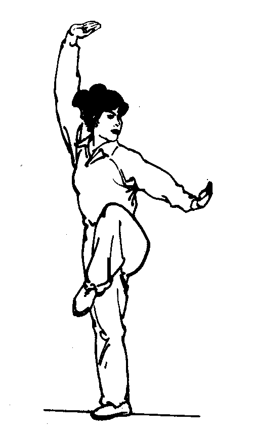 | 释义 | 独立步太极拳步型。一腿独立支撑,另一腿屈膝提起,大腿高于水平。如图。