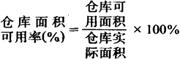 仓库规定用以堆放商品的可用面积与实际面积的比例。 以百分率表示。制定方法是:1.计算仓库的总面积(即仓库的基地面积)。2.计算仓库的实际面积。 以仓库的总面积,减去障碍物、建筑物及其与商品之间必要的距离和实际不能堆放商品的空地面积所剩余的面积。 它是反映仓库能够存放商品面积的理论数据。3.计算仓库可用面积。 以仓库的实际面积减去货垛与四壁的墙距和固定走道的面积。它是反映仓库在储存商品中可发挥储存效用的面积数据。4.计算仓库面积可用率。其计算公式为  它反映仓库实际面积中可用于在放商品的程度,是制定仓库面识可用率定额的依据。5确定仓库面积可用率定额。根据仓库的建筑条件、存放商品的性能、商品进出库的频繁程度,仓库所使用的运输工具等情况,按照上级有关规定,确定商品储存场所的墙距和固定走道的面积。 用计算仓库面积可用率的八式,算出仓库面积可用率的定额。采用这一定额管理,能提高仓库的储存能力。 |