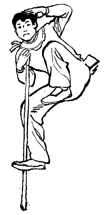 是把猴拳的动作与抡、劈、扫、截、撩、舞花等棍法结合起来的一种象形棍术表演。套路中有“蹬枝望果”、“倒立撑杆”、“勾棍抛接”、“横扫顽敌”等带有情节的动作,以逼真的模仿和高超的技艺,艺术地再现了美猴王的形象。猴棍的表演,棍法刚劲有力,技巧难度颇大,风格别致,引人入胜(图65)。