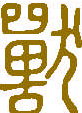 獸獸(兽)Shòu现行较罕见姓氏。今河南之郑州、山西之新绛有分布。《山西人口姓氏大全》收载; 《姓氏词典》亦收,未详其源。 獸shòu野獸。枚乘《七發》:“逐狡獸,集輕禽。” 獸 通“守”。 《吕氏春秋·君守》:“故若大师父者,以其兽者先之,所以中之也。”按:于省吾曰:“兽”应读作“守”。《广雅·释诂》:“兽,守也。” 獸“兽”的繁体字。 上一条: 兽 下一条: 瘦 兽獸{}四5795名古建筑屋脊两端的兽头形陶制装饰物。晋语。山西忻州〖 〗。   獸兽(5次) ❶泛指野兽何~能言《天》 鸟~鸣以号群兮《章·悲》 山萧条而无~兮《远》 禽~骇兮亡其曹《士》 ❷此指骐骥。鸟~犹知怀德兮《辩·五》 獸❶牛馬之類。《周禮·天官·冢宰》:“獸醫:下士四人。” 鄭玄注: “獸,牛馬之類。” ❷腊也。《儀禮·特牲饋食禮》:“棜在其南,南順,實獸於其上,東首。”鄭玄注: “獸,腊也。” 古代名物 > 獸畜類 > 雜稱部 > 單稱 > 獸 獸 shòu 哺乳動物之通稱。通體披毛,多棲於山野。《周禮·夏官·大司馬之職》:“大獸公之,小禽私之。”《左傳·襄四年》:“民有寢廟,獸有茂草。”《爾雅·釋鳥》:“四足而毛謂之獸。” 獸shòuAB46 “兽”的繁体。 獸shòuS149 “兽”的繁体。 獸獸,甲骨文作   ,金文作  ,小篆作 。 從字形分析,似是从單从犬,單亦聲。“單” 爲古代盾形器械,可用於狩獵或征戰。从犬者,狩獵必有犬。而從金文三個字形看,从單从犬亦猶从嘼从犬,“單” 即 “嘼”。裘錫圭説,“獸” 本作 “嘼”,“單” 字的繁文,所增之 “口” 爲裝飾符號,亦如金文第三字形右側 “嘼” 下之从甘,“甘” 即 “口” 中增短横者。“嘼” 增意符 “犬” 則爲 “獸”。依此,則 “獸” 字構形可以解釋爲从嘼从犬,嘼亦聲。本義是狩獵,“狩” 的初文。狩獵曰獸,故所獵之物亦曰獸,後世爲動詞義造形聲字 “狩”。周官有 “獸人”,執掌有關狩獵及貢獻獸物之事,則 “獸” “狩”一事。卜辭或用如 “狩”,狩獵。銘文或用狩獵、巡行義,或用作人名。 楚簡帛文作 ,沿襲古體。秦簡牘文作 ,古意猶存,古隸典型,又可見 “嘼” 與 “單” 本爲一事。參見059.單字條。 178.趣談“獸”字獸,從嘼從犬,嘼是獵叉和捕網的結合,犬是打獵時的得力助手。獸本應是動詞,後來借爲名詞,成了“禽獸”的“獸”。祗好另造“狩”字返還爲動詞。