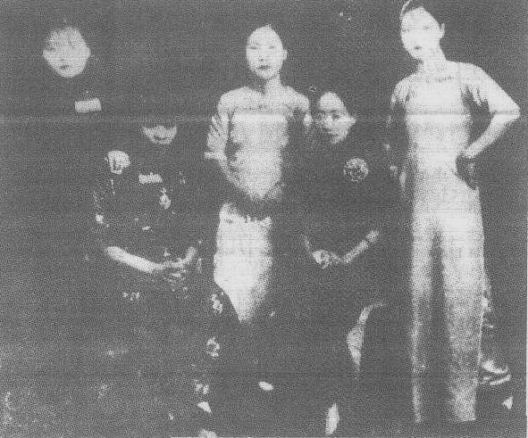 铁片大鼓演员王佩臣(右二)与梅花大鼓演员花四宝(右一)