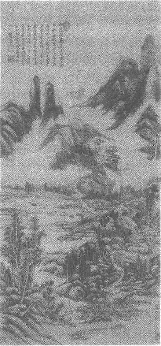 | 释义 | 王原祁仿高房山云山图轴 王原祁仿高房山云山图轴清。王原祁绘。纸本设色。纵113.6厘米,横54.4厘米。上海博物馆藏。王原祁(公元1642—1715年),字茂京,号麓台,又号石师道人,江苏太仓人。王时敏孙,康熙九年(公元1670年)进士,供奉内廷,官至户部侍郎,人称王司农。工诗文,登第后,专心画理,善画山水,宗法黄公望,功力较深,很受康熙皇帝赏识,在行政事务外委任他在宫廷从事古今名画鉴定及绘画创作。康熙四十四年(公元1705年),出任书画史论资料汇编《佩文斋书画谱》的编辑总裁,70岁时曾奉命主持绘制《万寿盛典图》为玄烨祝寿,是当时具有很高声望的画家,与王时敏并称为“娄东派”,清初六大家之一。享年74岁,著有《雨窗漫笔》、《麓台题画稿》、《扫花庵题跋》。此图写江南山村春天雨后初晴时的景色。岭峦高耸,峭壁险绝,云雾萦绕于山间,还未散去,飞瀑高挂,松木挺拔。山麓间,雨水汇集成的泉流汩汩奔涌,汇入溪中,流水潺潺。高树苍郁,嫩柳柔弱,修竹密集,清气袭人,村落房屋散布于万木丛中。设色淡雅,墨法浑厚滋润,意境深远幽静。此图云山取元人高克恭法,横点皴染,焦墨提醒。墨色浓重,构图高深缥缈。此图作於“丙子”(公元1696年), “辛巳” (公元1701年)补题长跋,并再加点染,款署“麓台”,钤<麓台>朱文印、<石师道人>白文印、<御书画图留与人看>朱白文双龙椭圆印,押角<苍润>朱文长方印、<得失寸心知>白文长方印。此图曾由清人秦祖永、近人庞元济收藏,钤有<秦逸芬心赏真迹印>朱文长方印、<虚斋审定>白文印。