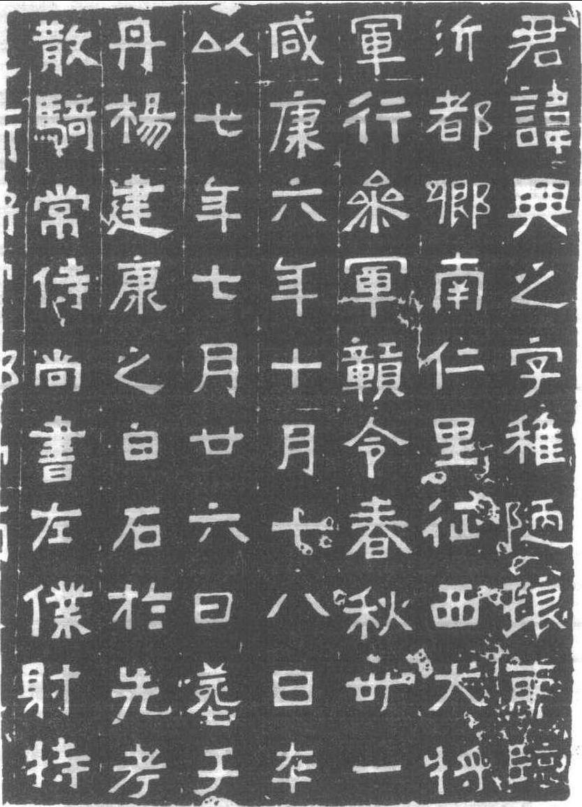 | 释义 | 王興之墓志東晉·咸康六年 (340) 刻。楷書十三行,行十字。王興之乃王氏族人,王彬子,王羲之從兄弟 (→見【琅琊王氏一族】)。志書奇特,頗具异色,但不知何人書,或係興之四子之一。書風與族人<王丹虎墓志>、<王閩之墓志>、<王興之妻宋和之墓志>同類。是時王羲之二十歲,正值變易王氏族人傳統書風之時,此志書體與舊時王書殊異,引人注目。一九六五年出土南京象山南麓。→見【王丹虎墓志】、【王興之妻宋和之墓】、【王閩之墓志】