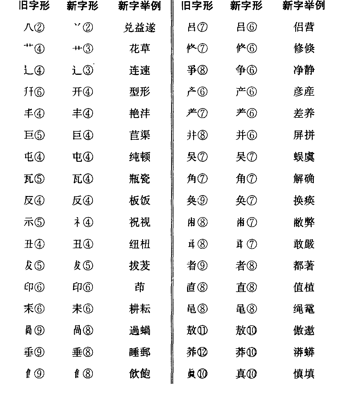 (字形后圆圈内的数字表示字形的笔画数)