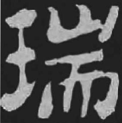❸ 祥云瑞气 瑞 金文; 篆ruì[王(玉,意符)+耑(聲符)→瑞(《説文》:“瑞,以玉爲信也。從玉、耑。”瑞,玉。古代作爲信物,人執以見曰瑞〈即人端此信物于手中相見時,就叫作瑞〉。引申爲吉祥〈瑞雪兆豐年〉。姓。)] [明] 凌濛初《初刻拍案驚奇》(卷八):“盡道豐年瑞,豐年事若何?”(都説瑞雪預兆來年豐收,豐收了百姓的生活又過得怎樣呢?) 瑞ruì(13画)