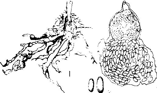 黄瓜根结线虫病 1.为害状 2. 成熟雌虫及卵囊 3. 卵 |