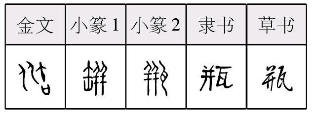 | 释义 | 瓶Píng罕见姓氏。《郑通志·氏族略》收载,初见於《姓苑》。《姓氏考略》注云: “河南郡有瓶丘聚 (见《后汉书·郡国志》)当以地为氏。一作 ‘缾’。” 瓶píng汲水器。揚雄《酒賦》:“子猶瓶矣。觀瓶之居,居井之眉。” 瓶 瓶郭沫若著。1927年4月1日上海创造社出版部初版。收诗43首。 ☚ 君山 旅心 ☛ 瓶读音p·ing(ˊ),为ing韵目,属ing—eng韵部。薄经切,平,青韵。 上一条: 砯 下一条: 缾 瓶〔ping〕binl. ![]() ![]() 瓶*缾píng瓶子 瓶缾口小腹大的器皿,一般用来盛液体:~子︱~胆︱~塞︱花~︱胆~︱暖~︱水~丨冰~︱油~︱药~︱烧~丨守口如~。 瓶píng❶ 瓶子,一种容器,通常口较小,颈细肚大,多用瓷、玻璃等制成:酒瓶│瓶子。 瓶ping瓶插1 瓶胆 瓶颈2 瓶笙 瓶装 瓶子 冰瓶 瓷瓶 胆瓶电瓶 花瓶 酒瓶 烧瓶 瓶子草 保温瓶 暖水瓶 守口如瓶 旧瓶装新酒 瓶ping(~儿)瓶子:玻璃~儿打碎了|高的~儿里装的是醋|把味精装在小的~儿里。 瓶píng❶(~儿)花瓶;瓶子:鼎焚百合之香,~插长春之蕊。(十七一十八·379)袭人笑道,“好金贵东西!这么个小~儿,能有多少?”(三四·773) 瓶炊器也。《禮記·禮器》: “夫奥者,老婦之祭也,盛於盆,尊於瓶。” 鄭玄注:“盆、瓶,炊器也。” 陸德明《經典釋文》:“瓶,步下反。” 古代名物 > 日用類 > 炊食部 > 水器 > 瓶 瓶 píng 亦作“缾”。古代汲水及盛酒器,或為炊器,後世亦作陳設品。初為瓦器,後則有青銅及陶瓷等多種質地。新石器時代已有陶製瓶,殷周時有青銅瓶,宋以後至明清時各種瓷瓶更為豐富。陶瓶形制多汹長頸。平底鼓腹。有肩,肩上或有耳,腹上或有繫。亦有一種尖底瓶,汹、鼓腹,腹下部内收,底呈錐尖形,用於汲水,為仰韶文化之典型器物。青銅瓶與壺形制頗相似,傳世遺器中自銘為瓶者,如“孟城瓶”、“弘瓶”等皆為短頸無足。古遺器中亦有壺形而自銘為瓶者,如“洹子盂姜壺”。可見壺與瓶在古時並無區别。今人將似壺而無足、短頸、鼓腹者歸人瓶類。瓷製瓶種類繁多,形制一般為長頸,廣肩,鼓腹抑或垂腹;或為汹,細短頸,鼓腹,瓶身瘦長,腹下部微收,平底,亦有腹部渾圓者,一般無耳,器體大小相差甚巨,宋及明清時期燒製甚多,並於瓶身繪刻各種精美圖案,可為陳設珍品。《儀禮·士喪禮》:“新盆槃瓶廢敦重鬲,皆濯造于西階下。”鄭玄注:“瓶以汲水也。”《禮記·禮器》:“夫奥者,老婦之祭也。盛於盆,尊於瓶。”鄭玄注:“盆、瓶,炊器也。”《文選·沈約<;三月三日率爾成篇>;》詩:“象筵嗚寶瑟,金瓶汎羽巵。”李善注:“瓶,酒器也。”清·王世稹《祭孫無言文》:“居闐闐中,委巷掘門,鉼無儲粟。” 瓶瓶缾píng容器名。古代多用陶土或金属等制成。白居易《琵琶行》:“银~乍破水浆迸,铁骑突出刀枪鸣。”彭端淑《为学》:“(贫者)曰:‘吾一~一钵足矣。’” 瓶*△缾píngC6BF 瓶píngAE4A 用具 用具器(器具;器物;器件;器用;竹~) 具(家具;行~;教~;量~;玩~) 家伙 家事 家活 家生 家什 另见:家具 器具 工具 ☚ 用具 清扫用具 ☛ 盛器 盛器盛(执~) 钵 缿 另见:装 食物 食具 盛食具 饮具 ☚ 盛器 古代盛器 ☛ 瓶 103 瓶一般指口小、颈细、腹大、体修长的容器。可供陈设或盛酒之用。宋代各瓷窑已能烧制各种花色的瓶,经元、明两代的发展,至清代瓶的品种、造型愈益繁多,如双连瓶、双鱼瓶、净瓶、花口瓶、葫芦瓶、弦纹瓶、宝月瓶……,多种多样,各具特色。 ☚ 盘 盆 ☛ 瓶缾píng腹大口小的容器,用瓷或玻璃等制成。如:酒瓶子,花瓶儿,墨水瓶儿。 瓶[缾]pínɡ ❶ (瓶子) bottle; vase; jar; flask: 醋 ~ vinegar cruet; 花 ~ flower vase; 芥末 ~ mustard pot; 两 ~ 牛奶 two bottles of milk; 热水 ~ thermos flask; 盐 ~ saltcellar; saltshaker 瓶vase;bottle 瓶píng❶ 瓶缾; |
