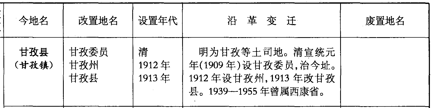 甘孜县(甘孜镇)甘孜委员甘孜州甘孜县清1912年1913年明为甘孜等土司地。清宣统元年(1909年)设甘孜委员,治今址。1912年设甘孜州,1913年改甘孜县。1939—1955年曾属西康省。
