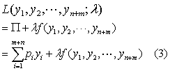f(y1,y2,…,yn,yn+1,…,yn+m) (2) 假定 (2) 式双重可微,其一阶导数恒为正,且呈凸性,则最优生产计划可以使用拉格朗日函数来表述: