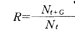 式中 Rc为净出生率。M为迁移引起种群变化率。用此方程表示种群的变化,世代愈完全重叠,方程表示愈精确,但也可用来表示世代不完全重叠的昆虫种群。当参数lx和mx不是常数时,R值可以用平均世代时间内所存在的全部世代的参数均值近似地给出。这些参数以均数表示,故称为世代平均生命表。