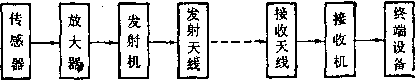 图1 无线遥测系统的一般组成 (1) 多通道遥测装置: 多通道装置能利用一部发射机同时测量多种参数,常见的为2~4通道,也有的多达15通道。多通道遥测系统按工作原理分为频分制和时分制两大类。 ❶频分制系统:按频率划分通道,每个通道占据一个副载频,选择副载频时除使各通道的频谱互不重迭外,还应使它们之间的谐波干扰最小。各通道信号经相加器迭加后对载波进行调制(第二次调制),再从天线辐射出去。接收端先经第一次解调恢复已调制的多通道信号,一般情况下,通道不多时,采用频分制比较有利; ❷时分制系统:按时间划分通道,在发送端用时分开关对多路信号进行采样。为了使接收端能够识别通道的序号,在发送端需加入同步脉冲。时分制的调制方式有脉幅调制(PAM)、脉宽调制(PWM)、脉位调制(PPM)和脉码调制(PCM)。时分制系统主要用脉冲数字集成电路实现,一般情况下,通过数目较多时,为实现小型化采用时分制比较有利。其中,脉码调制系统的抗干扰能力最强,脉宽调制系统在配合使用磁带记录时,可以减少磁带速度抖动引起的噪声。 (2) 天线: 天线的作用是辐射或接收无线电波,在无线遥测系统中占有重要地位,能显著扩大作用距离。在微型发射机中,特别是植入式装置中没有安装线状天线的空间,多采用磁偶极子天线,有时就利用射频振荡线圈作天线,周围电磁场有两个分量其中衰减较慢的远场与距离一次方成反比 当距离等于1/6波长时,近场与远场的强度相近。由于工作距离往往远大于波长,故实际应用中多利用远场分量。仅当植入式系统等发射功率十分微弱的条件下才利用近场分量。若需扩大作用距离,最好采用与波长尺寸相当的天线,如1/4波长天线,其辐射效率较高。在不允许使用垂直天线时可采用拖尾天线,腰带天线或装在头盔顶上的折迭式振子天线。接收天线则相对不受空间限制,普通采用<1/4波长的鞭状天线。为了提高接收天线的增益和方向性,也常采用带引向器和反射器的振子天线,又称八木天线。 (3) 电源: 对于体外遥测系统,由于更换电池容易,电池尺寸和工作寿命都不成问题,在电路设计上也不必过分追求降低功耗,故氧化银电池、锌汞电池以及普通的锌锰电池都可用作能源。植入式遥测装置的工作寿命受电源限制,在许多情况下,整个系统的设计首先取决于发射机电源的选择。植入系统要求工作时间长,必须采用低功耗电路和高能量密度电池或体外供电方式。体外供电的方法是体外交变磁场通过体内埋设的谐振回路和二极管转变为直流电,用其对埋藏于体内的全密封式蓄电池充电。或者,发射机与电源整流共用一个谐振回路,当外界磁场消失后,遥测又继续进行。这种供电方法使生物体组织不可避免地吸收较多的高频能量,超过人体的安全剂量,故只允许间断地或短期使用,或用于某些动物实验。 (4)建筑物内的遥测系统: 钢筋混凝土结构的建筑物对电磁波有很大的衰减作用。例如一个作用距离为数千米的遥测系统,在建筑物群附近由于电磁波的反射和吸收,其有效距离仅几百米,在建筑物内使用时只有几十米。在一条100米长的走廊里,虽然两端能够直视,但无法进行可靠的遥测。故在大型建筑物内需采取措施。医院里可在病房、走廊、厕所及楼梯的天花板下悬挂若干宽带接收天线,用电缆将接收到的信号汇合到接收机输入端,这样,在全部天线覆盖区域内就能进行可靠的遥测。电话遥测 利用市内电话的医用遥测,主要用于使用起搏器患者的定期随访。患者定期用遥测装置将心电图传给医疗信息中心,该中心分析了心电图后即可决定患者何时必须到医院调整、治疗或更换起搏器。心电的电话遥测系统如图2所示。该系统的发射机可做成袖珍式,电池供电,患者携带并自行操作。在使用时,先把电极贴在自己的胸前几个特定部位,接通电话,然后把听筒放在遥测装置上,已调制的声频信号通过声耦合器就传给了话筒,这时医疗信息中心便可记录下患者的心电图。为了使患者操作方便,一般只包括两个导联的心电图。最后,患者还可通过电话听取医院的建议。这种遥测系统能给医院的管理工作和患者带来方便。 ![]() 图2 心电遥测系统 ☚ 手术监护 医学微型计算机系统 ☛ 生物医学遥测 生物医学遥测航天生物医学遥测技术是生物医学电子学的一个分支。它利用“远动技术”将航天员的生理信息变换、处理传送到地面。由于目前多采用无线电波作为传递媒介,故也称此项技术为“无线电生物医学遥测技术”。藉助于此种技术,地面的航天医学工作人员可对正在太空中航行的航天员的生理变化进行实时观察和分析。生物医学遥测系统的组成如图1所示: