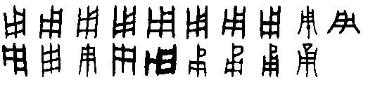 yònɡ表意,甲骨文、金文1下象骨版,上象卜兆,金文2、小篆字形稍变,隶定为“用”。上古先民往往占卜后决定事情是否可行,故本义表示可以施行。(一说甲骨文象桶有把手之形,是“桶”的本字,引申为施用。)引申为使用(使人或物发挥功能)、功能、功效、费用、需要、介词(引入动作的工具、方式)等。 【辨析】 ❶以“用”作音符构成的形声字一般读yōnɡ:拥、佣、痈。 ❷用/庸 见508页“庸”。用 (yòng)从卜、中。 卜之而中,乃可用也。 用 ☚ 付 甬 ☛ 用〈动〉(1)要;需要;用得着。 《醒》二三: 你的这两个儿子是两块美玉在那顽石里边,~寻一个绝会琢玉的好匠人方琢成得美器。又二五: 那薛家素姐听见狄希陈来到,便关门闭户的躲藏不迭。他的母亲说:“你又还不曾留发,都是小孩子们,正好在一处顽耍,为甚么~这样躲避?” (2) 吃、喝(多含恭敬意)。 《金》五四: 等大哥一来,~了饭,就到郊园上去。 《醒》四四: 彼此认生,俱不肯吃。连夫人又再三让他,他只是不~。 《聊·禳》三三: 公子云:“爹娘都再~些儿。”太母云:“我合您爹能吃多少?” |