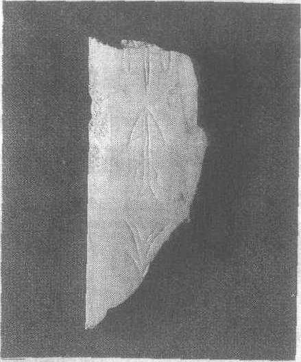 ☚ 玉器 熊虎相斗纹玉板饰 ☛ 甲子表残玉版商。青玉,长7.4厘米,宽3厘米。灰青色。正面阴刻双钩“庚寅辛”三字,其中“庚”、“辛”二字泐伤。“庚”、“寅”、“辛”应是“庚寅”、“辛卯”之缺。字体清晰劲健,背面平素。此甲子表残玉版采用大字双钩法,是国内仅见之作。据陈邦怀先生考证,甲子表玉版原件为6片组成,每片文字二行,每行20字。此残片属第3片,文字在第二行(详陈邦怀:《商玉版甲子表跋》,《文物》1978年第二期)。此玉版是古文字研究的珍贵资料。现藏天津市艺术博物馆。 |