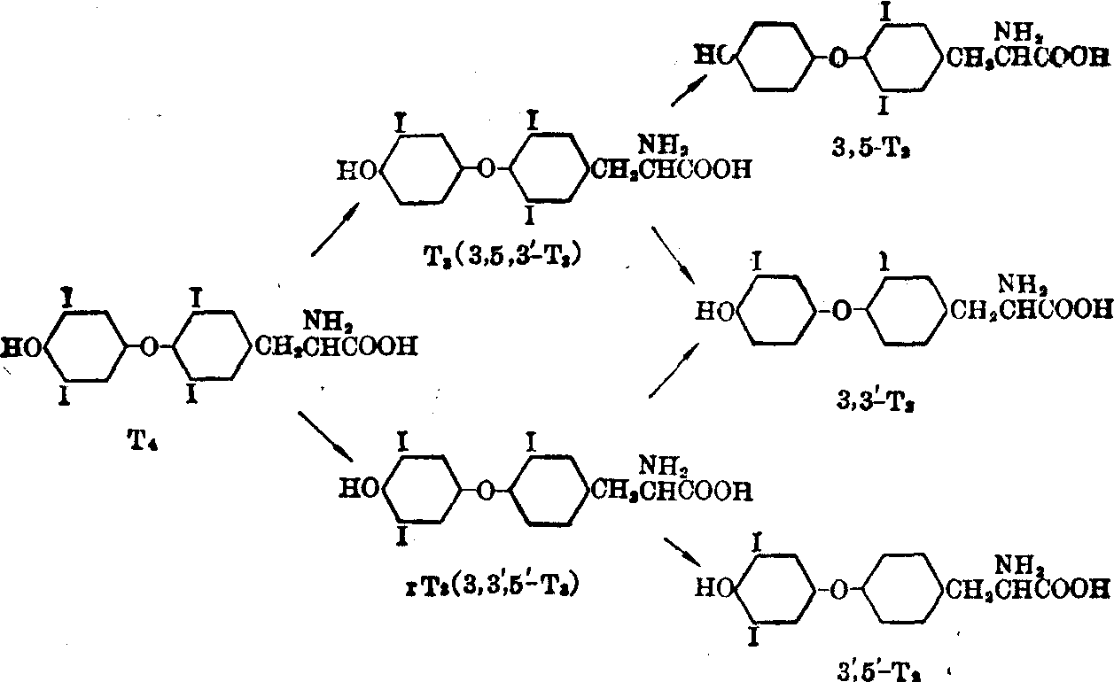 图2 T4脱碘代谢分子结构转变 表4 rT3及T2的正常值(ng/dl)