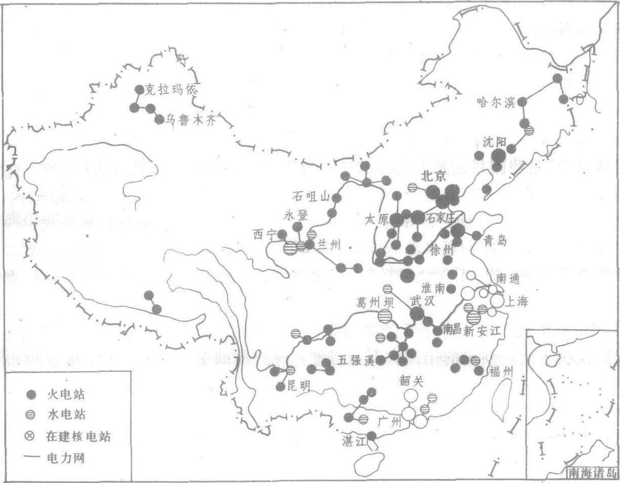 我国电力工业分布图