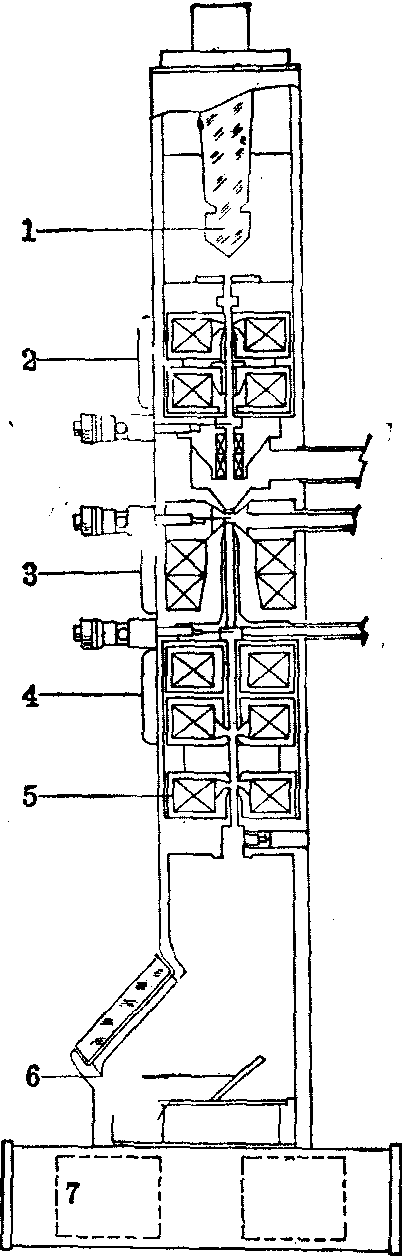 图3 电子显微镜结构示意图 ❷成象系统: 包括样品室及一组成象透镜,后者主要由物镜、中间镜和投影镜所组成。样品室要求通过机械手能很灵便地取出或放入样品,控制样品移动的机械精度要求很高,漂移必须达到1~2A/s,重复精度必须在±100A以内。依实验要求可加上加热、冷却、拉伸和倾斜旋转等附件。物镜是电镜最关键的部件,物镜中的微细缺陷都将被成象系统中其他透镜所放大。它是一个焦距较短、放大倍率较大的磁透镜,对于物镜极靴的材料纯度、结构、加工精度和清洁度等要求都很高,必须保证磁场的轴对称,并确保在强磁场情况下也不产生磁饱和现象。为改变成象的孔径角及增强反差,须加物镜光栏,此光栏的孔径和位置必须合适和便于调节。透镜的非轴对称性以及光栏和透镜的污染,都将引起象散,可严重影响分辨本领,可加一消象散器予以纠正。中间镜和投影镜均为高倍率透镜,放大率一般均为100×,而中间镜则为倍率可变的弱透镜,用于控制总放大倍率,可以很方便地大范围调节放大率,也可用2个中间镜,即在靠近投影镜处再加一个第二中间镜,使放大倍率由1000×~800,000×连续放大,由此可获得消象差的最佳条件。通过四个透镜相继放大,所显示的四级放大系统比三级放大系统更为复杂,最高放大率可达×106。此外,这一特低倍率的透镜(第一中间镜)适处于能获得衍射图象的最佳位置上,称之为衍射透镜,当衍射时,可在较大范围内改变图象的放大率。在中间镜的正面径向装有可调光栏,便于作微区电子衍射时使用。投影镜为最后一级放大透镜,三级成象系统的电镜常通过变更投影镜极靴的孔径以改变其放大倍率,而在新型四级放大系统中,投影镜放大倍率是通过改变激磁而调整的。 ❸观察记录系统: 观察记录系统由观察室、照相室和自动曝光装置组成。 投影镜放大后的最终电子象投射在荧光屏上,而成一可见的实象,由于小孔径成象系统的焦深很长,所以荧光稍有上下亦不致影响最终象的聚焦。荧光屏的亮度是电子数量和速度的函数。如需摄影记录,可将荧光屏移开,使置于屏下暗匣内的照相底片在电子直接轰击下感光成象。 (2)真空系统: 电镜对电子束通道(即镜筒内腔)的真空度要求很高,镜筒部分真空的好坏是决定电镜能否正常工作的关键之一。因在电镜中,高速电子与气体分子的相互作用,会使高速电子散射而偏离直线轨道,所以要尽量减少镜筒中的残余气体以保证电子的自由行程。电镜镜筒中的电子行程约为1m,经计算真空度应为10-3乇。然而在高压条件下,还必须考虑另一些因素,特别是高压的稳定度和防止样品污染。总之电镜镜筒的真空度愈高,使用性能愈好,一般应优于10-4~10-5乇。近年来超高真空电镜真空度可达10-8乇。 电镜的样品制备 (1)超薄切片术和超薄切片机: 一般透射电镜电子束的穿透能力<0.1μm,因此,用于电镜观察的标本,须经特殊处理,制成厚度为200~500A的超薄切片,才能分辨其内部微细结构,制备此类样品的技术,称超薄切片技术。它是在组织学切片技术的基础上发展起来的,包括取材、固定、漂洗、脱水、渗透、包埋、切片及染色等步骤: ❶取材与固定应根据实验目的,选取新鲜标本的适当部位,用新刀片切成<1mm3的小块,尽速投入固定液中作浸渍固定。为使标本的全部精细结构尽可能保存得接近活体状态,常用的化学固定剂有锇酸、戊二醛及多聚甲醛等,一般用二甲砷酸钠、巴比妥钠或磷酸缓冲液配制,固定液的pH值、渗透压及电解质浓度等均可影响固定的效果。 ❷漂洗与脱水。固定后的标本,用标本保存液或缓冲液漂洗,将固定液洗去,然后以浓度逐级升高的乙醇或丙酮将标本中的水分取代出来。 ❸渗透与包埋。使包埋剂逐步渗入标本中,将脱水剂取代出来。这种包埋剂必须易于渗入标本内部,镜检时与组织结构间有足够的反差,适当加温后很容易硬化成固体,切割性能好,且能经得起电子束的轰击。常用的包埋剂有环氧树脂、甲基丙烯酸酯及苯二甲酸二丙烯酯等试剂,一般均需另加增塑剂、硬化剂和加速剂等配制而成。 ❹切片与染色。含有标本块的包埋剂硬化成固体后,经过定位、修整,即可用超薄切片机切成薄于600A的切片,然后将切片捞在特制的铜质载网上,载网可预先复以火棉胶薄膜或聚乙烯醇缩甲醛(称Formvar,简称PVF)薄膜。捞取有切片的载网(即样品)染色后,在电镜下观察。染色就是使组织中的某些成分吸收重金属离子而产生电子散射的差异,由此提高样品的反差。常用的染色剂有醋酸铀和枸橼酸铅等。 有时为增强组织反差,组织块可先行染色一次,在脱水过程中(于70%酒精或丙酮时)或脱水前后进行,即为组织块染色。 超薄切片机可分机械式和热胀式两类。机械式系采用全机械系统,藉微动螺旋和微动杆提供微小进给,可切制200Å以上的薄片,优点是进给范围广,进给量均匀,不受外界温度变化的影响,故用以作冰冻超薄切片尤为适宜。缺点为切片一致性较差,切片效率不够高。热胀式则依靠金属标本杆热胀时所产生的微小长度变化而提供进给,切片自动进行,操作方便,切片效率高,质量稳定,能获得200~1000Å的连续切片带, 缺点为仪器易受外界温度变化的影响,故对环境温度的控制要求严格。超薄切片机还配有手动机械进给、退刀或让刀、消震、驱动及照明等装置。 制备超薄切片时使用的刀具有玻璃刀和钻石刀两种。玻璃刀