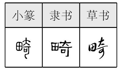 【提示】田,中间一横宋体与左右两边相接,楷体与左右两边相离。 右上是 ,大位于字上时,捺改点。 △畸jī13画 田部 (1) 不规则;不正常的: ~变|~形(1. 生物体某部分发育不正常,如“脊柱畸形”。 2. 社会现象反常,事物发展不均衡、不正常,如“畸形繁荣”)。 (2) 偏: ~重~轻(偏重偏轻,不合常规)。 (3) 零头;余数: ~零|~数。 畸 ☚ 疇 畮 ☛ 畸jī上古形声字。从田,奇声。本指残田,即不方正、不规则的田。引申指不规则的,不正常的。如:畸形。又引申为偏。如:畸轻畸重。又引申为零余的数目。如:畸零。 畸★常◎常