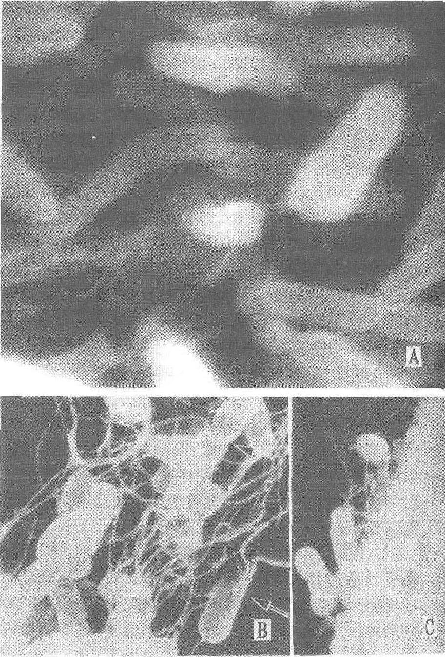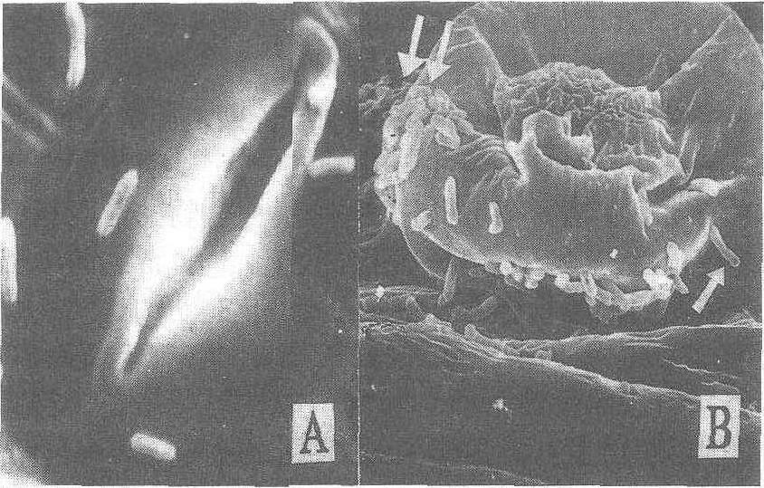 据格尔文(S.B.Gelvin 1984)和纳卡和哈格多恩(J.P.Nakas and C. Hagedorn 1990)。 双子叶植物—根癌土壤杆菌系统 位点吸附学说(site attachment hypothesis)认为,毒性菌株对寄主伤口上吸附位点的吸附,是侵染和致瘤的先决条件;如果无毒菌株或其它吸附竞争菌事先占据吸附位点,毒性菌株的吸附和致病作用就不能发生。学说的最初证据是:吸附竞争菌对毒性菌株致瘤作用的抑制能力,与它们对寄主伤口的吸附能力相一致;等量混合接种时,吸附竞争与致瘤的抑制存在一对一的数量关系,一个竞争菌菌体的吸附正好抑制一个瘿瘤的形成,统计结果是致瘤抑制效应为50%。 大白菜软腐病系统 病菌吸附的专化性表现为:吸附在植物间、寄主品种间及菌类间、病菌菌株间有明显差别,并与根系侵染能力相一致。吸附竞争菌对病菌吸附的抑制能力,与它们对大白菜根表的吸附能力相一致。以病菌LPS和寄主细菌凝集素间分子结合为机制的吸附,对软腐欧文氏菌类有专化性。 叶斑型植物细菌病害系统 吸附在亲和与非亲和菌株间明显不同。亲和菌株或始终处在SMV距离上,或产生CF类物质在菌体周围形成叶鞘状结构,由它与寄主细胞壁联结,细菌在里面可以自由增殖。非亲和菌体多数能在短时间内到达PMV距离,牢固吸附后引起寄主产生过敏反应(HR)(见病原物定殖)。 |