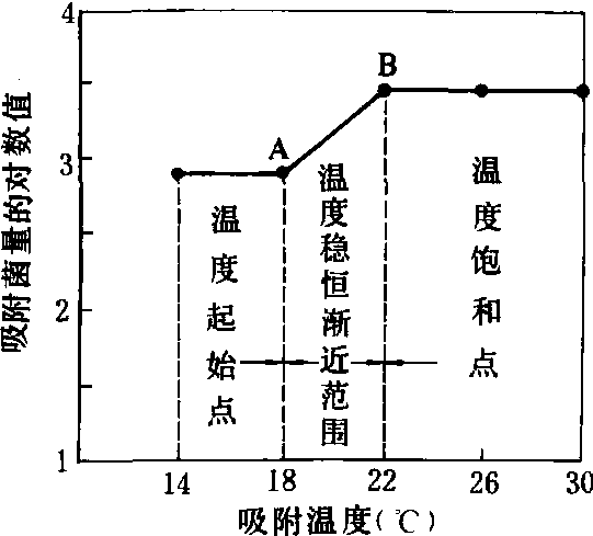 生化因子 有3类。❶在病原细菌与寄主植物接触识别中起作用的物质,分别称为细菌识别子(cognon)和植物识别子(cognor)(见寄主—病原物识别)。 ❷纤维素微纤丝(CF),由细菌产生,可以联结菌体并加固菌体的吸附(图1,D;图2)。 ❸菌体表面的蛋白质,参与对伤口表面或悬浮培养的寄主细胞的吸附。它们的作用都要在细菌与植物表面接近到初级最小值(Primary minimum value,PMV)距离时才能发生,PMV的值为0.1~0.5纳米(表1),这一距离允许细菌与植物表面间生化物质的联结,使吸附由可逆转变为不可逆状态。 在根癌土壤杆菌中,由生化因子参与作用的吸附分两步完成:第一步,由菌体脂多糖(LPS)或表面蛋白质起联结作用。第二步,菌体产生CF使吸附加固,同时联结尚未吸附的菌体使之发生吸附(图2,B、C)。1982年美国马蒂斯(Ann G.Matthysse)认为,在病菌对寄主叶或根伤口表面的吸附中,这3类物质的作用对成功侵染缺一不可。 环境因子 温度、pH条件和(Ca2+、Mg2+)等二价阳离子可通过调节理化因子的作用对吸附发生影响。❶温度。可以为细菌提供活动能量,增强细菌的运动能力,对吸附有两种影响:当温度低时,可提高温度增强细菌对植物表面的运动,使吸附能够发生,并在一定范围内增加吸附菌量;达到一定温度后,再提高温度则使可逆吸附的菌体解吸附。这两种作用在吸附动力曲线上表现为吸附的温度三基点:起始点、稳恒渐近范围、饱和点(图3)。 ❷pH条件。通过3种作用对吸附发生调节:H+或OH-减弱或增强细菌与植物表面间的静电斥力;环境与菌体pH的差,造成化学势(H+浓度差)或电化学势(电位差),与细菌的耗能机制发生关系从而影响菌体运动,和吸附状态的转变;植物识别子的作用要求一定的pH值条件,如大白菜对软腐菌的识别子是细菌凝集素(agglutinin),在根表作用的pH值范围为5.8~7.2。 ❸Ca2+、Mg2+。一般认为它们有两种作用:减弱静电斥力;结合到植物识别子或细菌识别子分子中增强分子联结力。